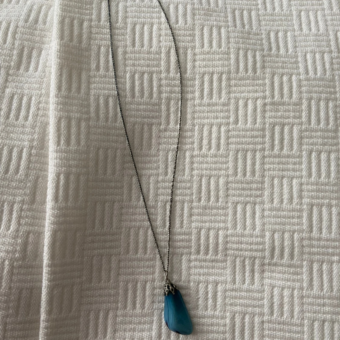 Ett halsband i silver med en blå sten 💙Är ganska säker på att det är en äkta kristall, en blå agat! Köpte den på loppis och har frågat runt lite och de flesta tror den är äkta 🥰Ingen garanti dock, riktigt snygg oavsett! Lite indie-goth stil 🖤
