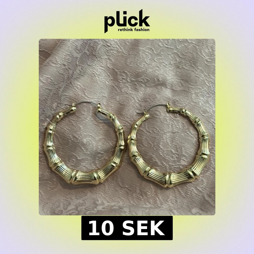 Säljer ett par stora hoops örhängen i guldig färg med bambuinspirerad design. Perfekta för att ge din look lite extra edge och stil. Passar dig som gillar statement-smycken!