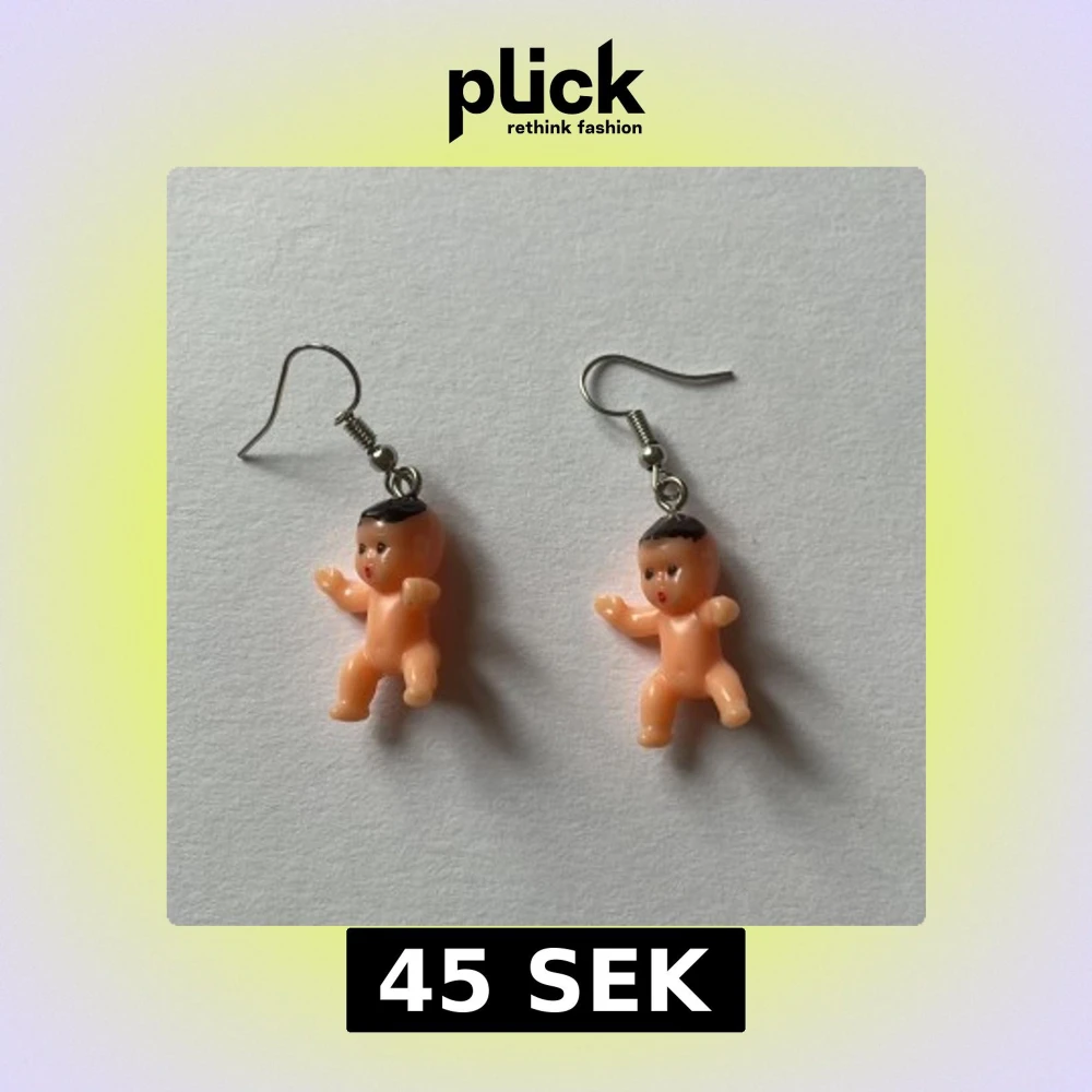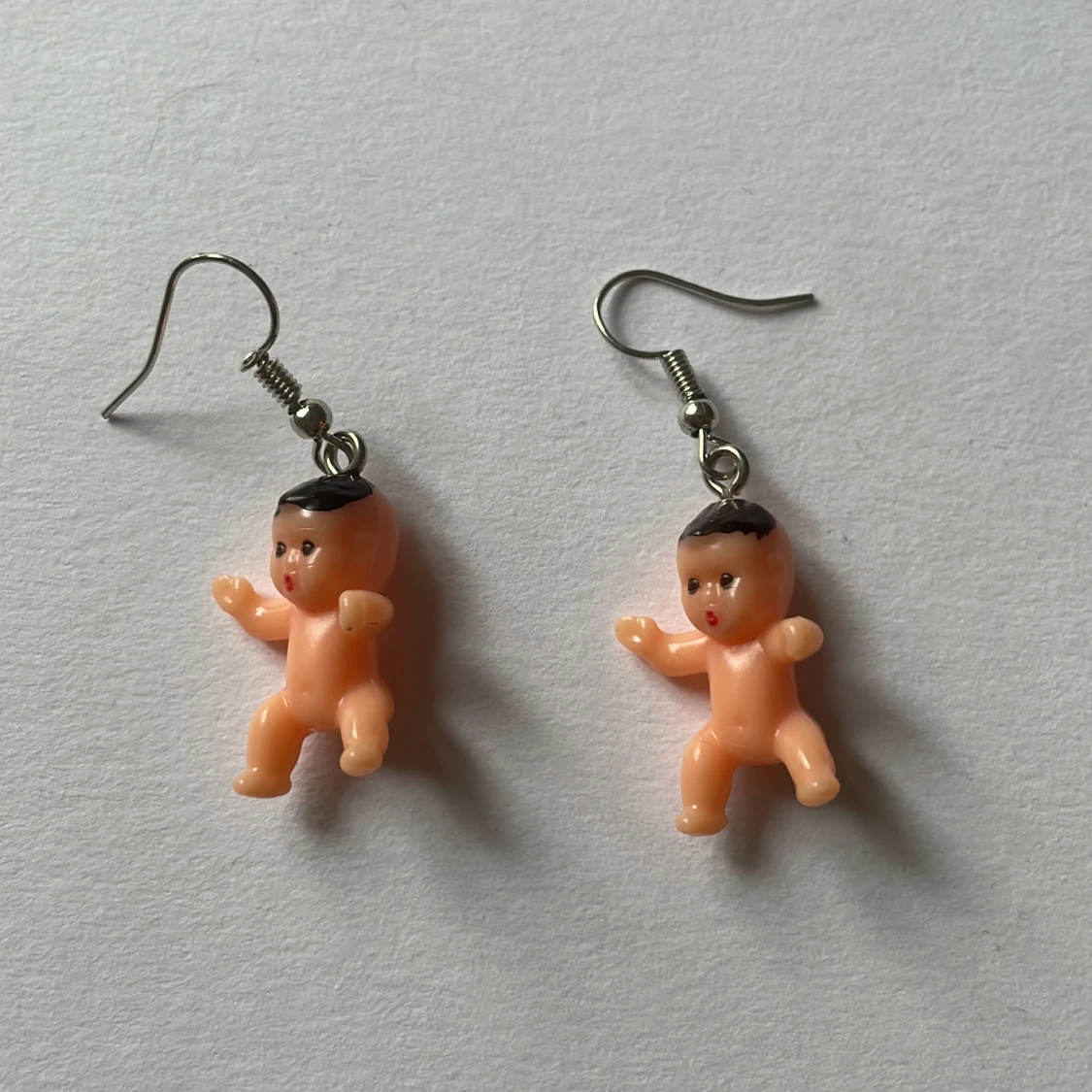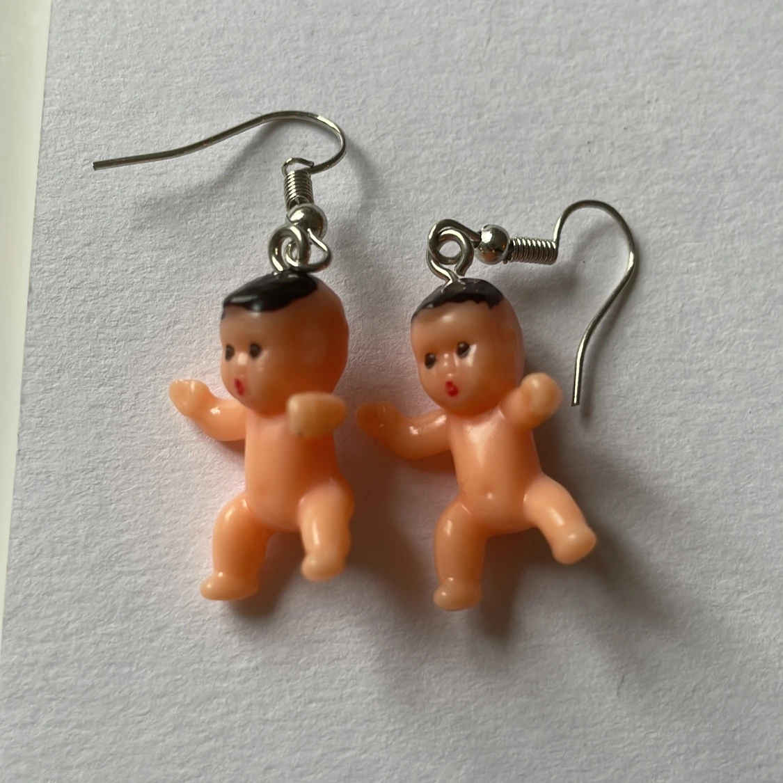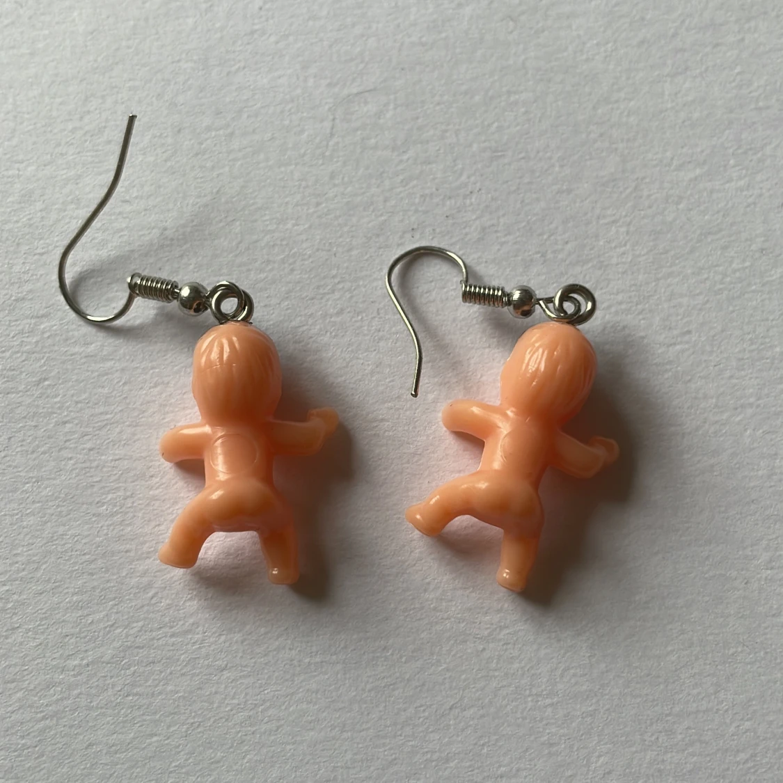 Örhängen med små babyfigurer i plast. Aldrig använda, perfekt för dig med unika smycken :3