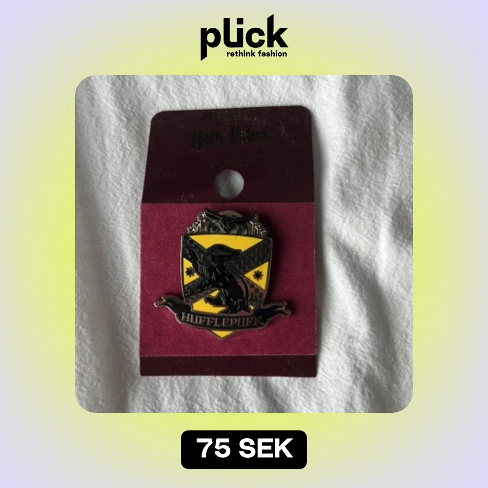 En officiell Harry Potter pin av elevhemmet Hufflepuff. Själva paketeringen har blivit böjd med det har inte påverkat produkten