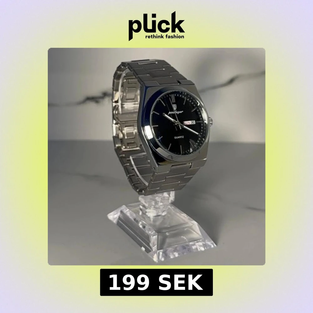 Stilren klocka med silverfärgad länk i metall och svart urtavla. Klockan har dag- och datumvisning, minimalistiska index och klassisk rund form. Perfekt accessoar för dig som gillar en clean look och snygga detaljer. BOX, ALLA LÄNKAR, LÄNKJUSTERARE och GLASDUK MEDFÖLJER! PRISET KAN DISKUTERAS VID SNABB AFFÄR!