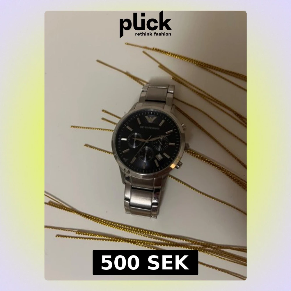 Stilren klocka från Emporio Armani med silverfärgad länk i metall och marinblå urtavla. Klockan har kronograf-funktion, datumvisning och markerade index. Perfekt för dig som gillar klassisk design med modern touch.