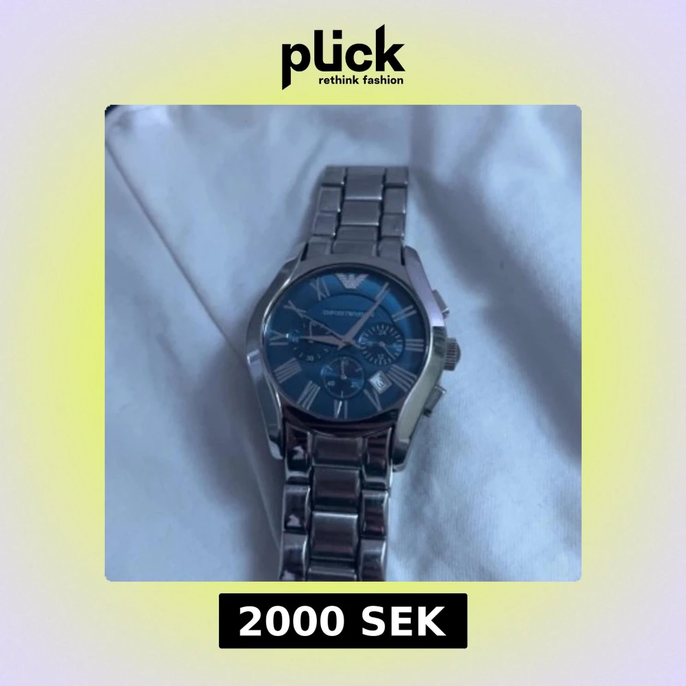 Snygg klocka i silver med en stilren blå urtavla och romerska siffror. Klockan har en länkarmband i metall och flera sub-dials för extra funktionalitet. Perfekt för den som vill ha en elegant accessoar. Pris kan diskuteras.