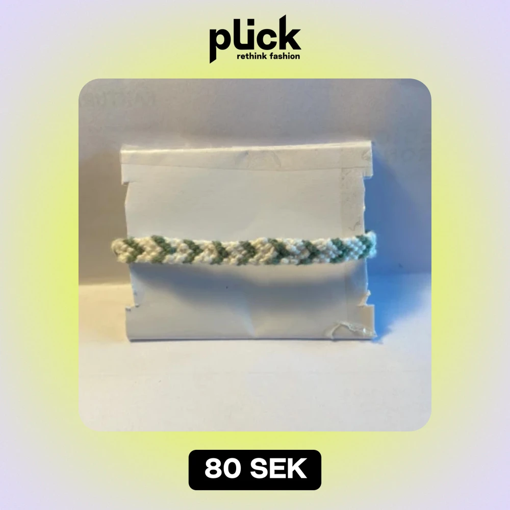 Har gjort armband i bomull skan, man kan ändra storleken elva till 19 cm, 0,5 cm brett. Armbandet är mörkgrönt och vitt.