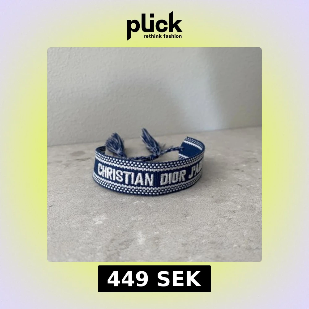 Säljer ett blått tygarmband från Christian Dior med texten 'Christian Dior J'Adior' i vitt. Armbandet har justerbar knytning med tofsar i ändarna och en snygg kontrastkant. Bara att höra av sig vid minsta funderingar eller frågor!🙌🌟