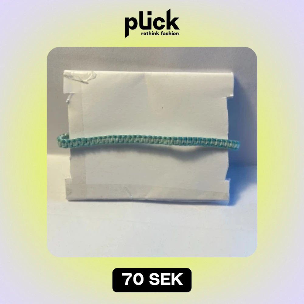 Handgjort armband i bomullsgarn, man kan ändra storleken 15-22 cm, 0,5 cm brett. Armbandet är turkosgrön och ljusblå. (Skriv gärna om du är intresserad och vill beställa en annan färg/mått)