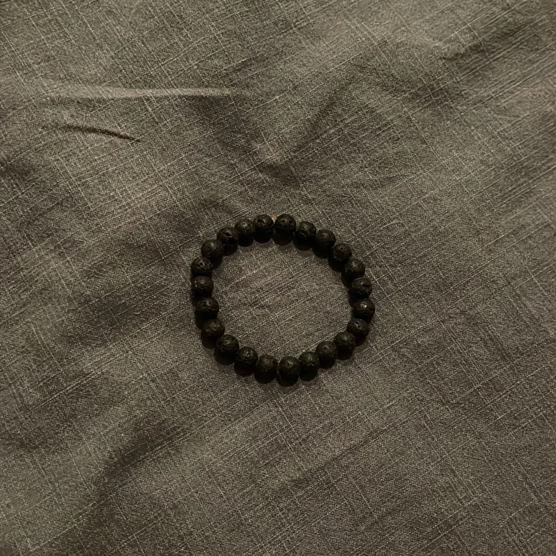 Snyggt svart armband med pärlor gjorda av lavasten och en brun sten. Perfekt för att ge en stilren touch till din outfit. Elastiskt band för enkel passform.