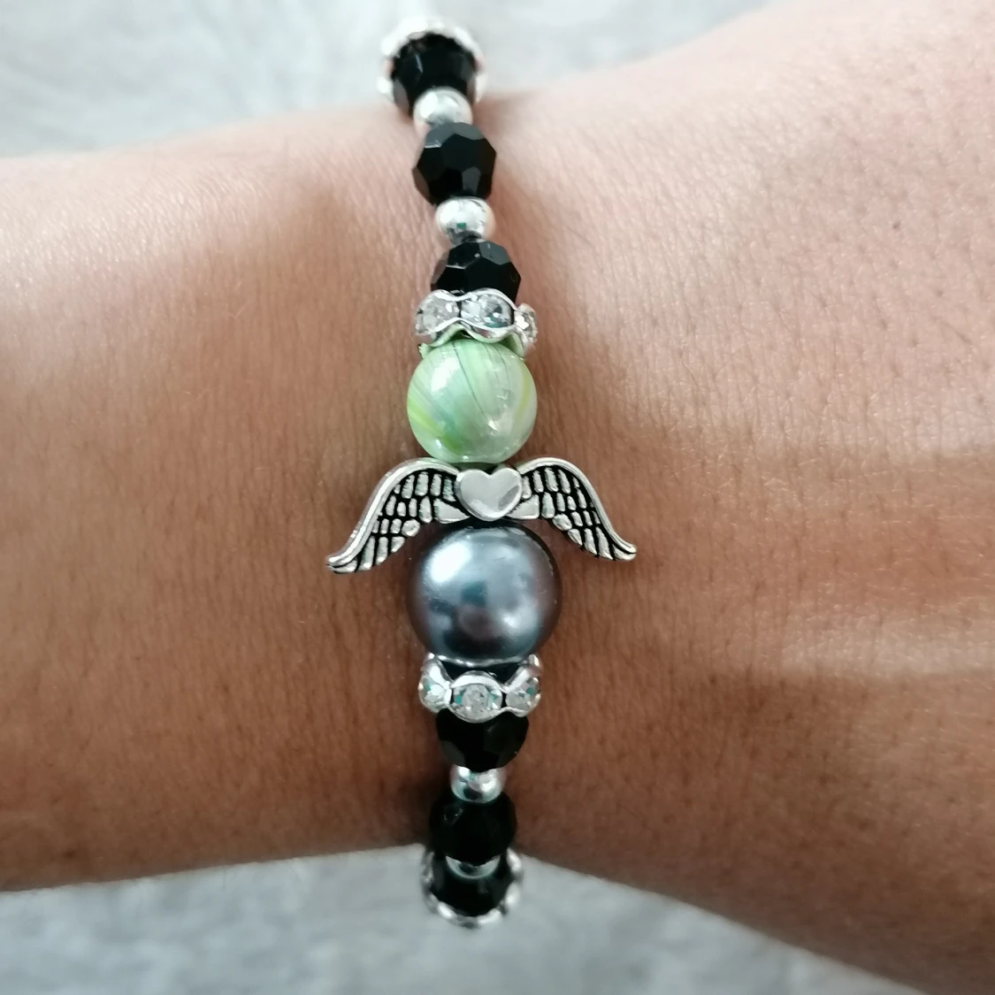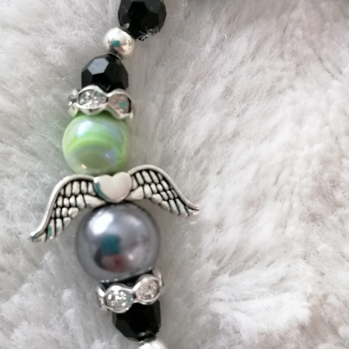 Armband Lyckoängel med pärlor och strass. . Det går att beställa olika storlekar. Egen tillverkning. Se mina andra annonser. Säljer även via Tradera @superbarnen och Instagram @emilysmycken. Tar Swish och Paypal. Postas genast. Alltid frifrakt. Skickar bevis i form av video/bild på postombudet.