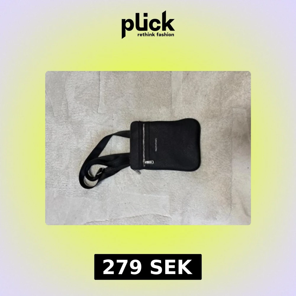 Snygg svart axelväska från Valentino med justerbart band och två dragkedjefack. Perfekt storlek för mobil, plånbok och andra småsaker. Köpt för 680kr, Aldrig använd!