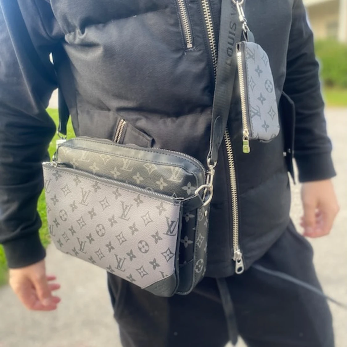 Gråsvart axelväska