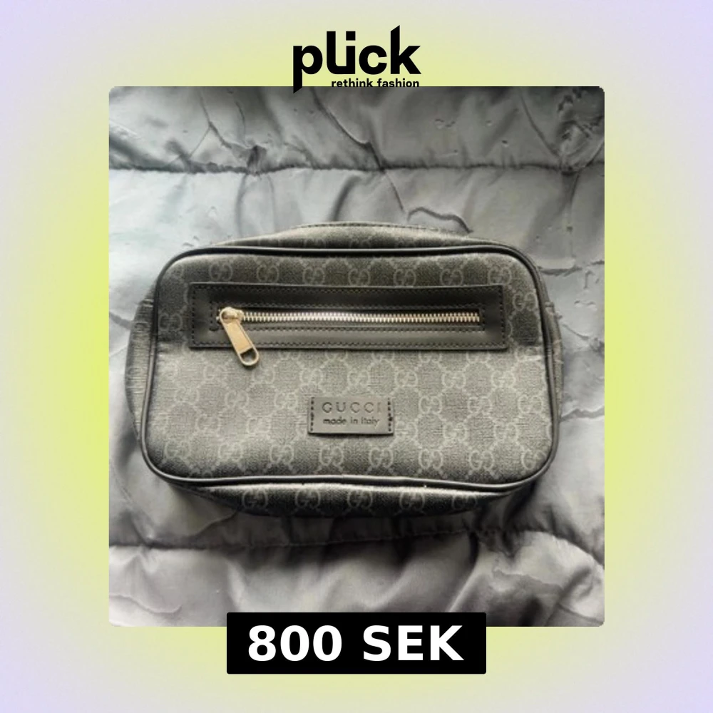 Snygg grå axelväska från Gucci med klassiskt GG-mönster och svart läderdetalj runt dragkedjan. Väskan har en justerbar axelrem i marinblått och rött, samt en praktisk dragkedja framtill. Perfekt för dig som vill ha en stilren och lyxig accessoar.