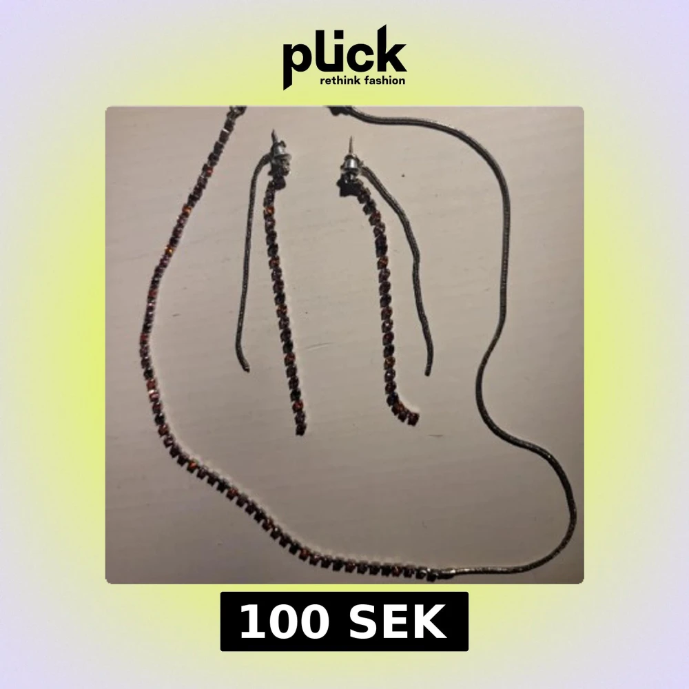 Ett par örhängen och ett matchande halsband från mexx. I silver och har diamanter i olika nyanser av röd, jättebra kvalitet.