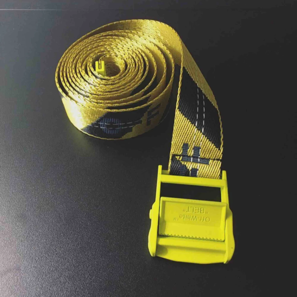 Off-white bälte. Skick: oanvänd, nyskick. Bra kvalité, spännet har tyngd och känns rejält. Inte original.