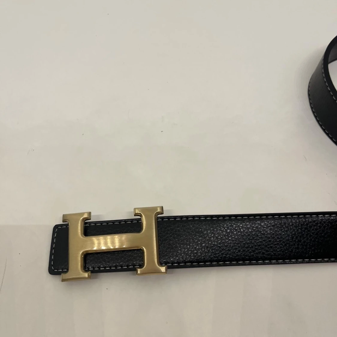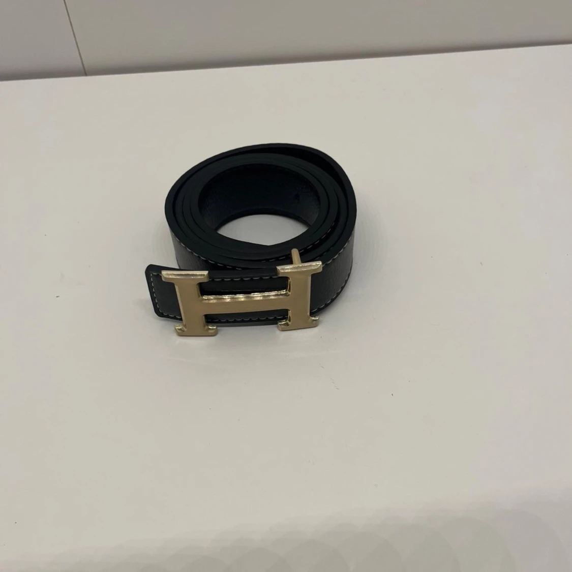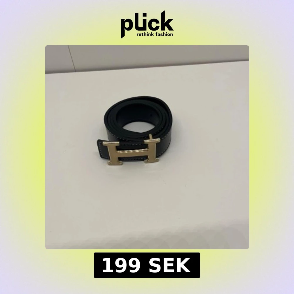 Ett svart bälte med guldig H, den är helt ny och är i 105 cm. Pris kan diskuteras och skriv om du har några frågor.