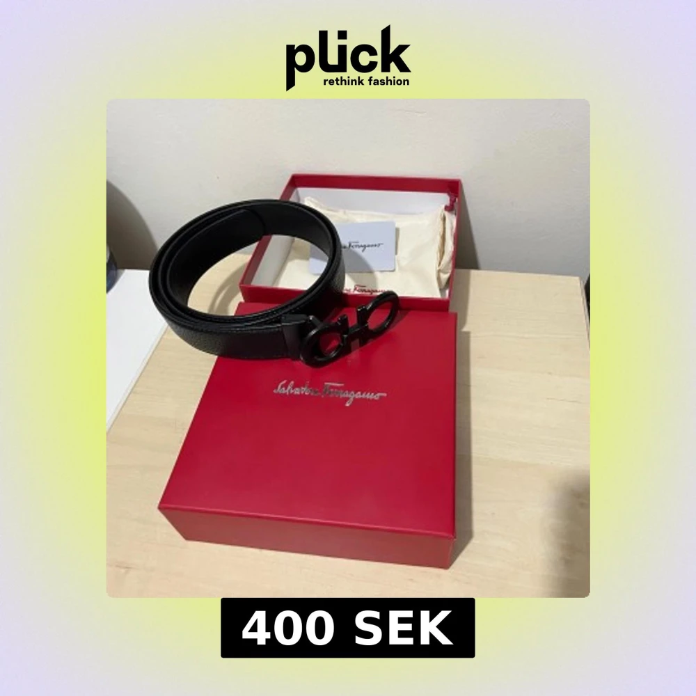 Stilrent svart bälte från Salvatore Ferragamo med ikoniskt dubbel-Gancini-spänne i svart metall. Tillverkat i präglat skinn och levereras i original röd ask med logga. Perfekt accessoar för att lyfta din outfit.