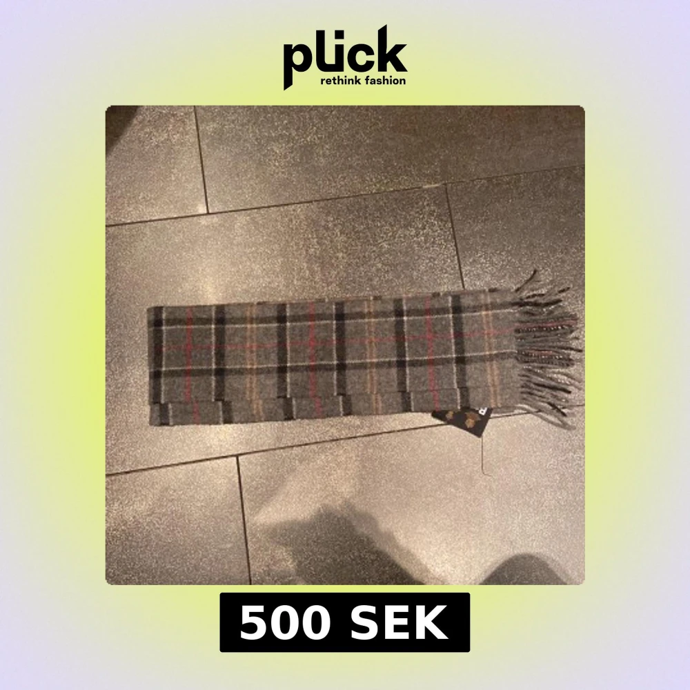 Snygg grå rutig halsduk från Barbour i 100% ull. Den har ett klassiskt rutmönster med inslag av rött och beige, perfekt för att hålla dig varm under kyliga dagar. Fransen på kanterna ger en stilren touch.