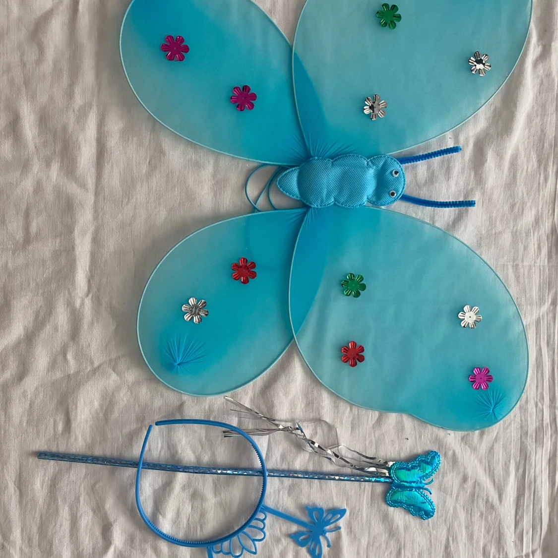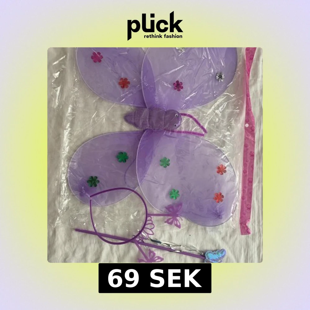 Två diadem i plast, ett lila och ett blått, med fjärilsdetaljer och glittriga blommor. Perfekt för maskerad eller temafest. Matchande vingar och trollspö ingår, allt i lätta syntetmaterial. Färgglada och lekfulla accessoarer som sticker ut. 69kr/paket , samma frakt , 3 år +
