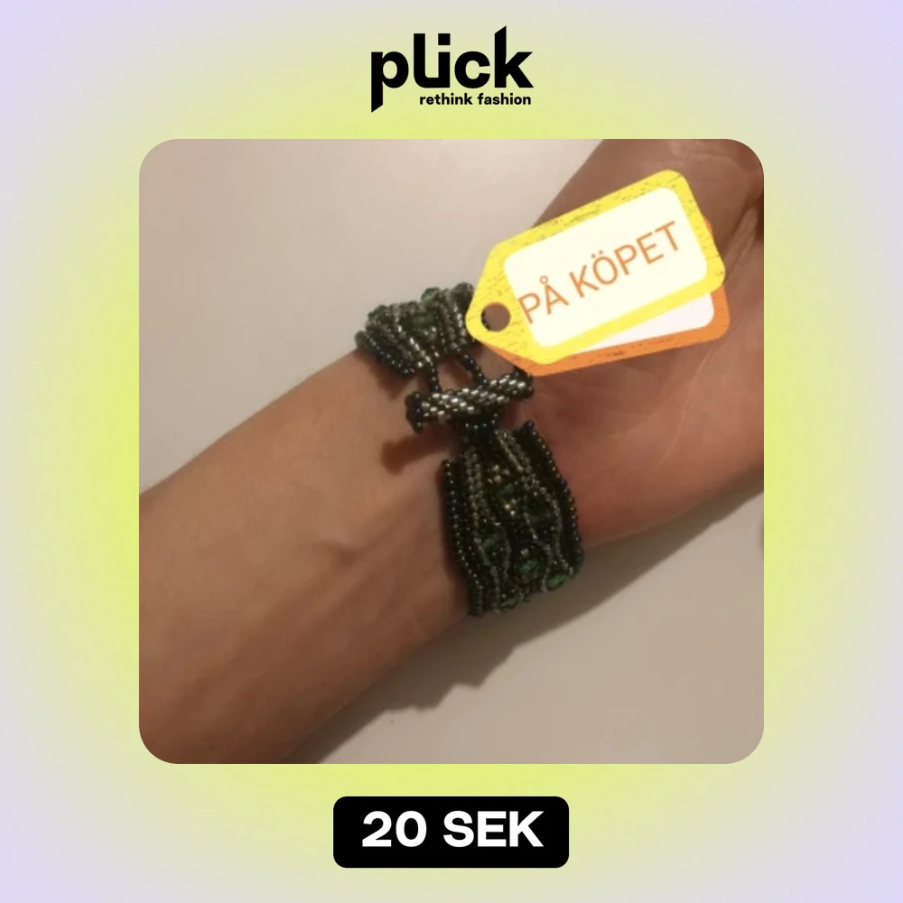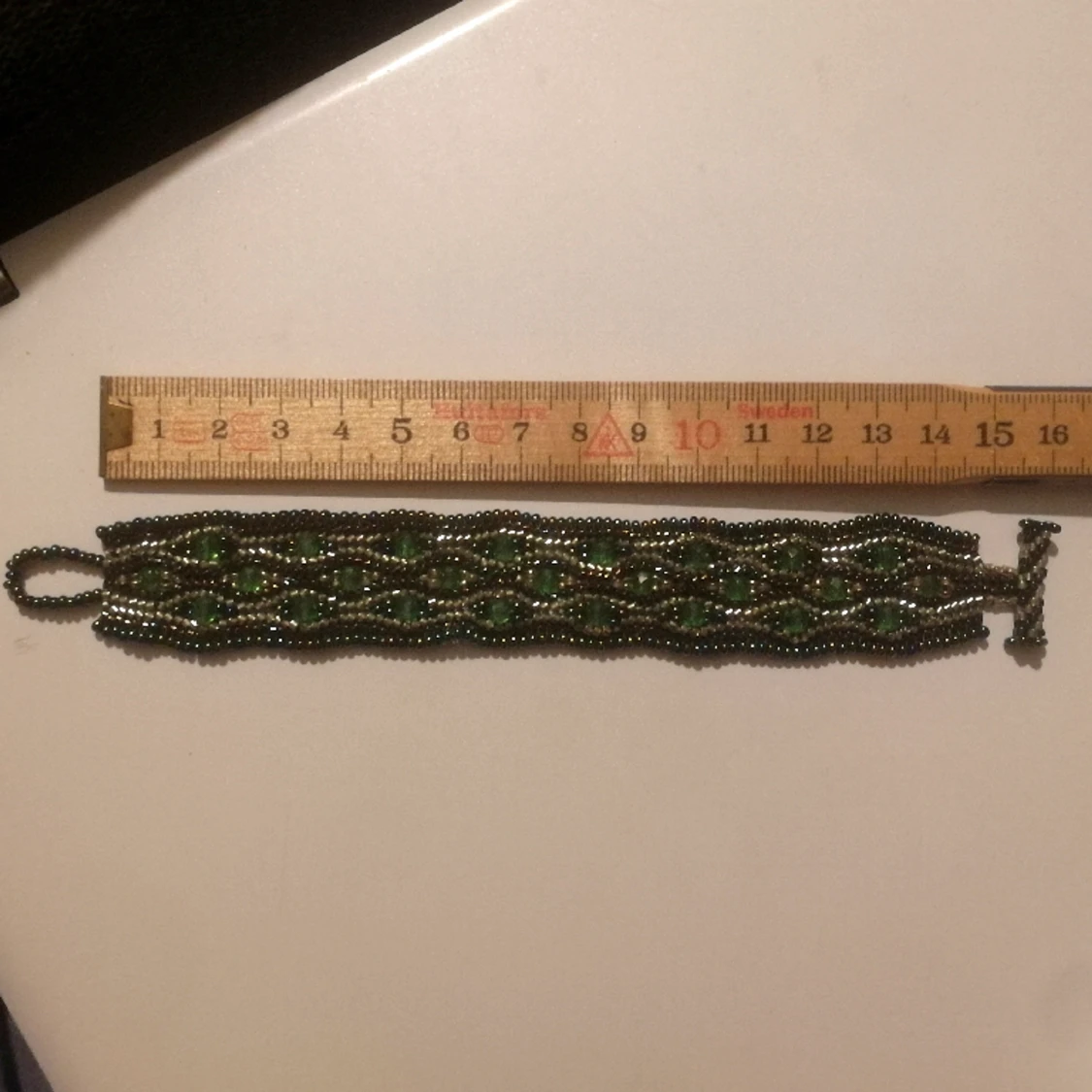 Armband med gröna pärlor. Mått på sista bilden, kontrollera att du mätt din handled :) I mycket bra skick, robust och bra kvalité. Skicka ett meddelande om du vill ha det när du köper nåt mer så skickar jag med det på köpet 🌸