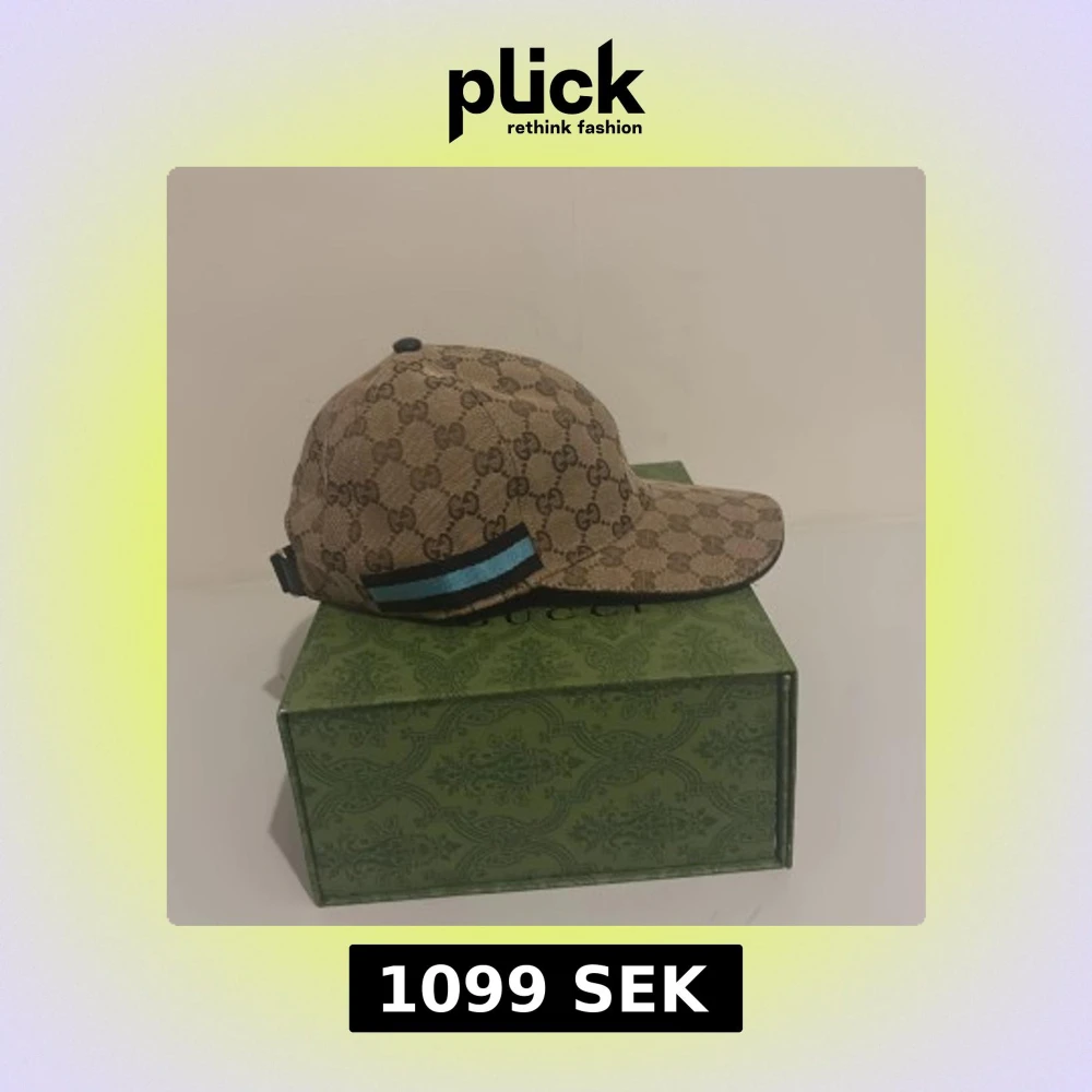Snygg beige keps från Gucci med det klassiska GG-mönstret. Kepsen har en justerbar rem baktill och en blå och svart randdetalj på sidan. Perfekt för att ge din outfit en lyxig touch.