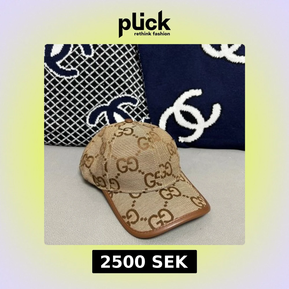 Snygg beige keps från Gucci med det klassiska GG-mönstret i brunt. Kepsen har en brun kant runt skärmen och är tillverkad i ett slitstarkt material. Perfekt för att ge din outfit en lyxig touch.