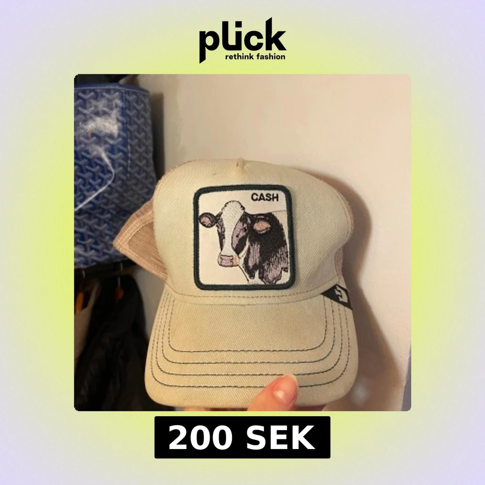 Snygg beige keps med ett broderat motiv av en ko och texten 'CASH' framtill. Kepsen har en mesh-baksida för bättre ventilation och justerbar passform. Perfekt för en avslappnad stil.