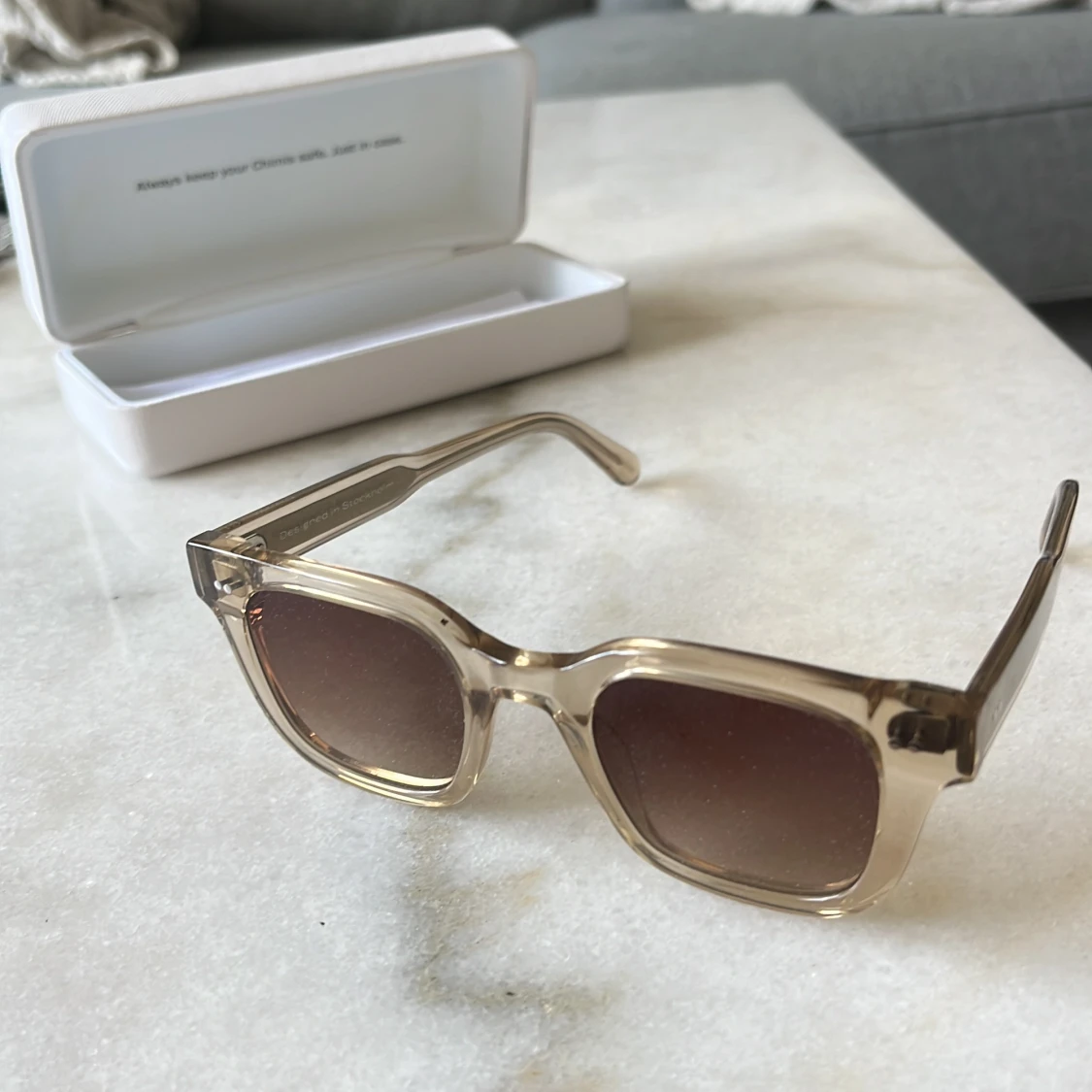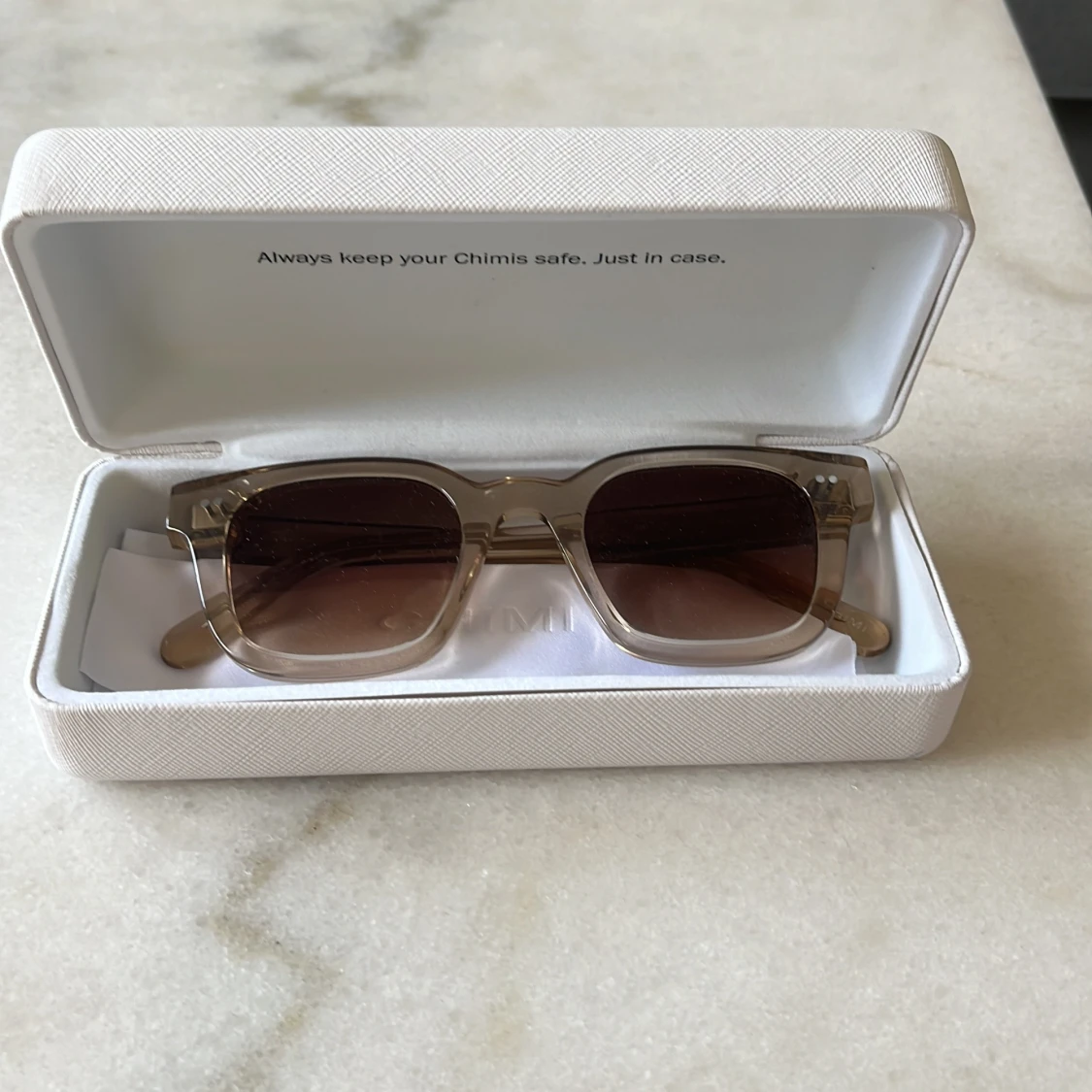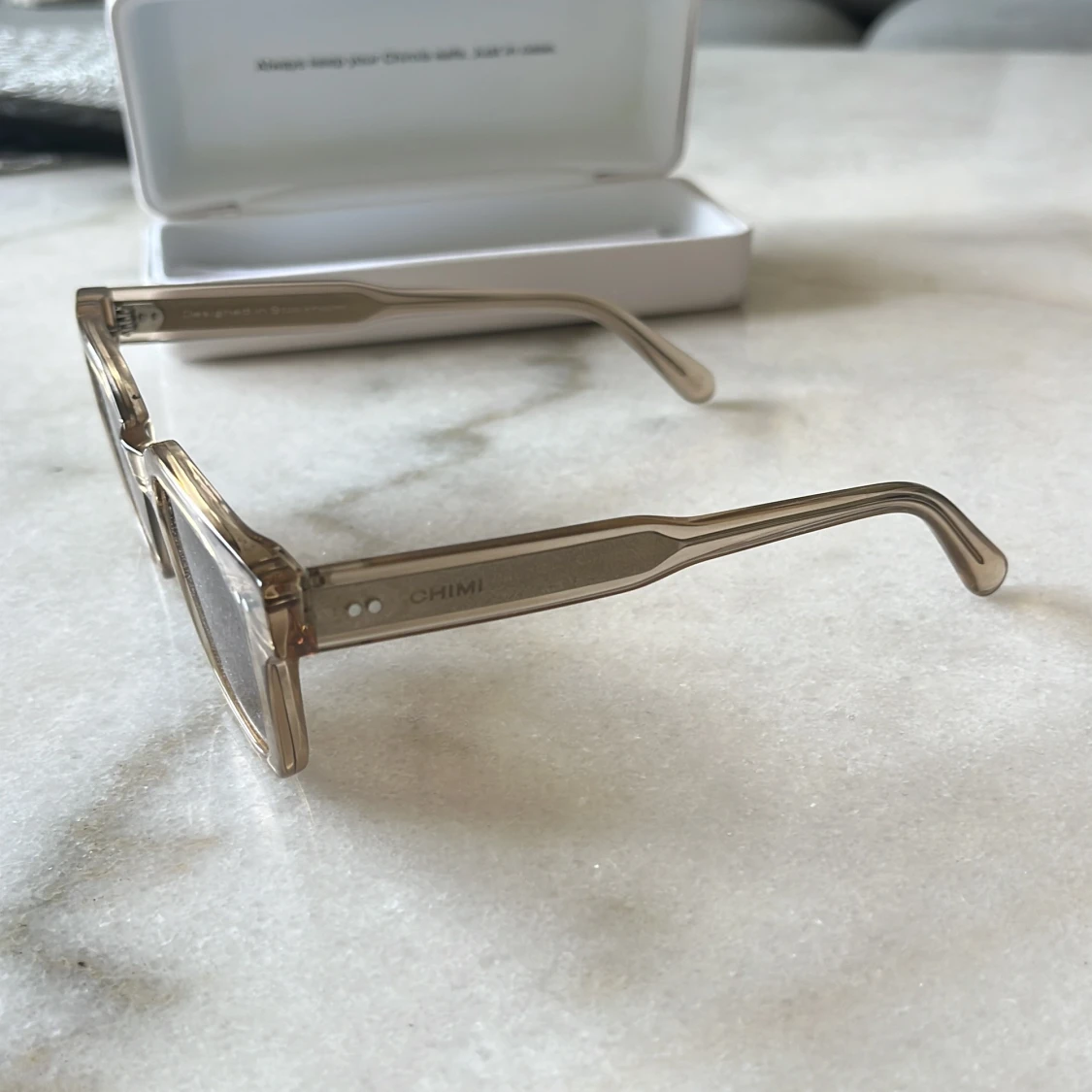 Snygga solglasögon från CHIMI i färgen Ecru, använt 2-3 gånger så dem är i nyskick. Kommer med ett stilrent vitt fodral. Perfekta för sommaren.