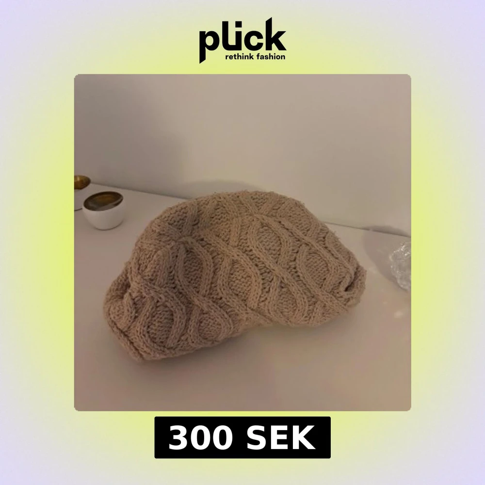 Säljer en mysig beige stickad väska med ett snyggt flätmönster. Perfekt för en stilren look. Passar bra till både vardag och fest.