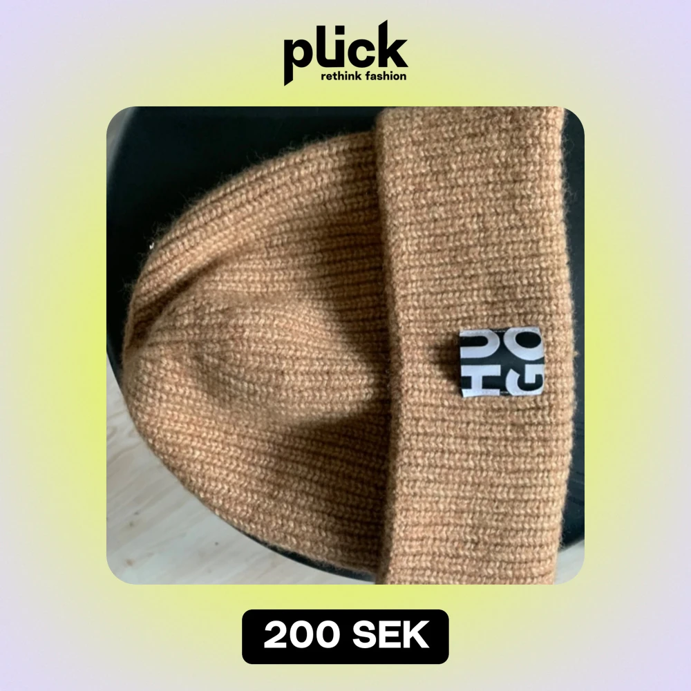 Säljer en snygg beige stickad mössa i nytt skick. Den är perfekt för höst och vinter och har en stilren design med en liten etikett framtill. Mössan är mjuk och bekväm, perfekt för att hålla dig varm under kyliga dagar.