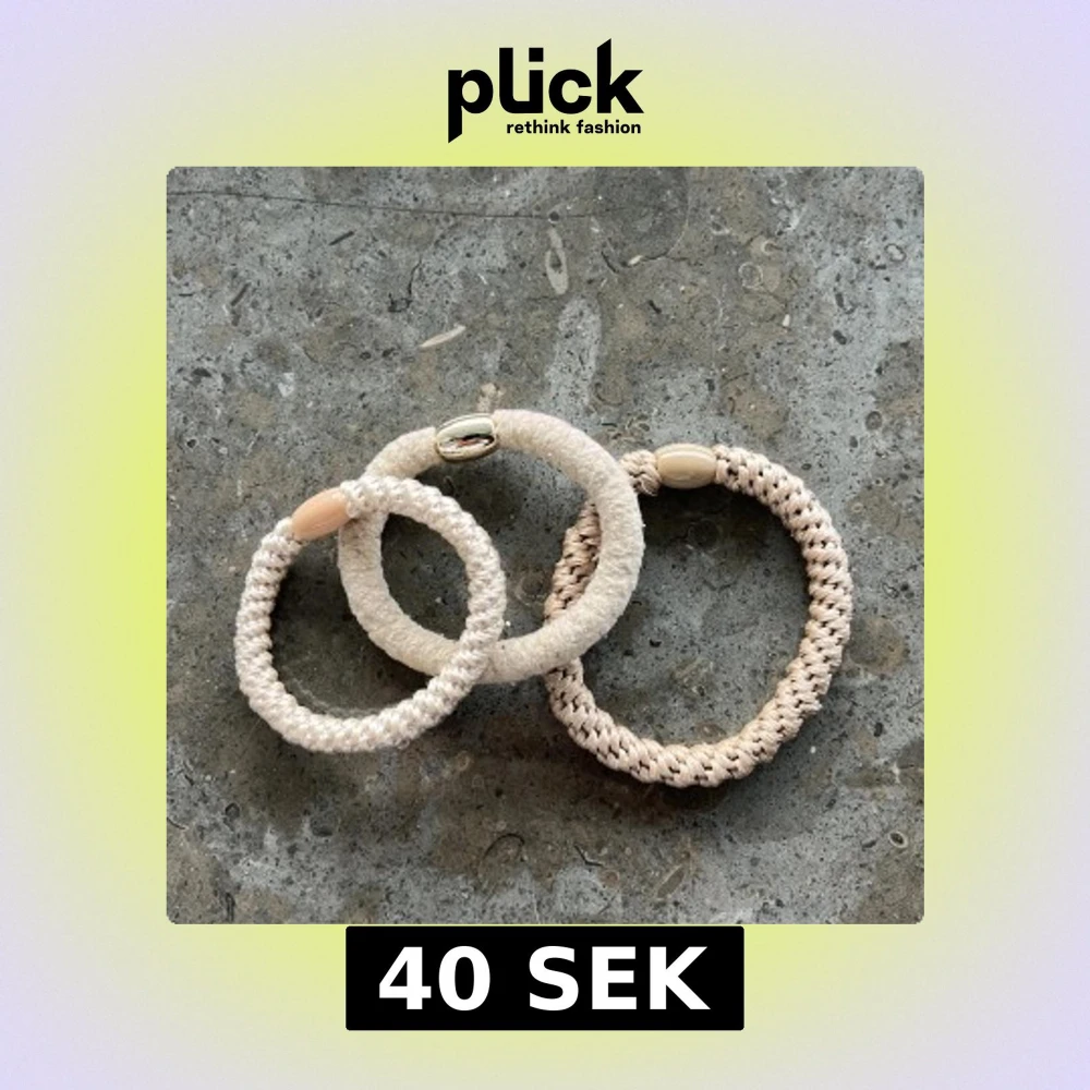 Säljer tre snygga beige kknekki armband. Två av dem har en dekorativ pärla i plast och ett har en metallisk detalj. Perfekta för att ge en bohemisk touch till din stil.
