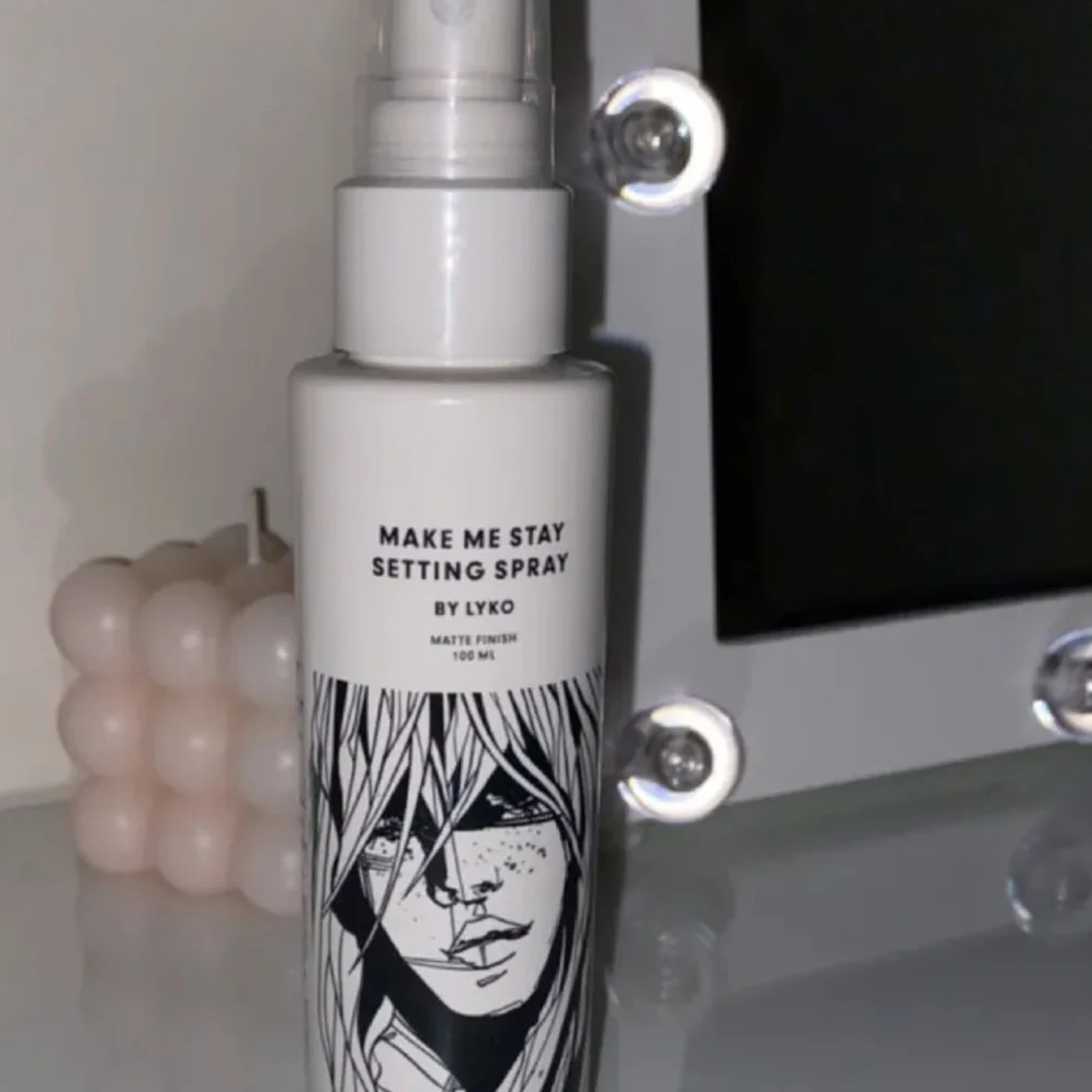 Setting spray från Lyko, är parfymerad men sätter sminket fint. Har inte så mycket att säga om den då den knappt är testad 💜