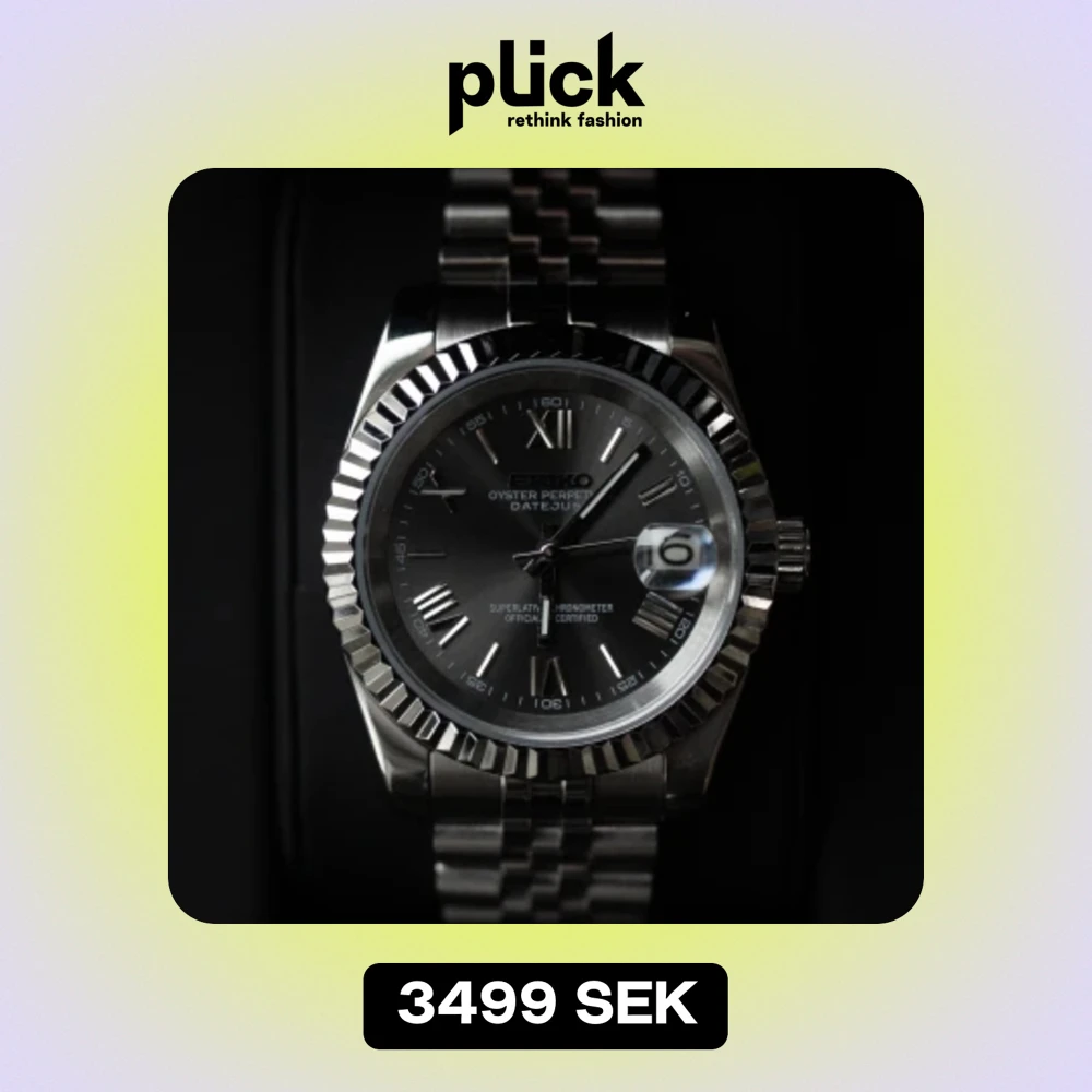 Egen gjord Seiko mod med NH35-A urverk som går på kinetiskenergi. Grå urtavla, jubilee band, förstoringsglas etc.