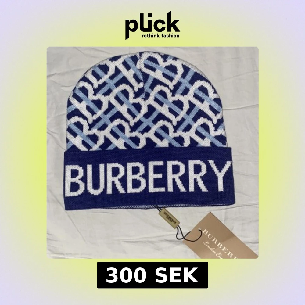 Trendig Burberry mössa med klassiskt mönster och logotyp, perfekt för att hålla stilen varm.