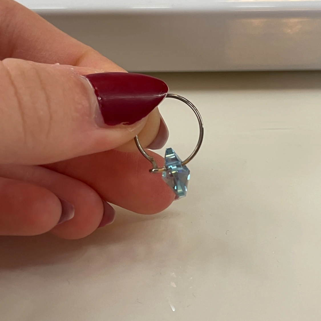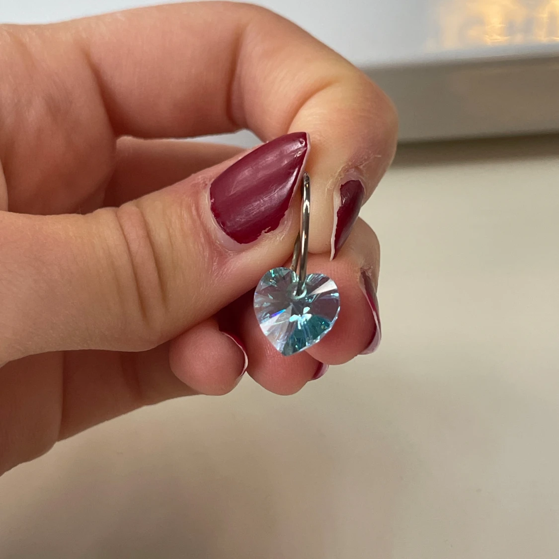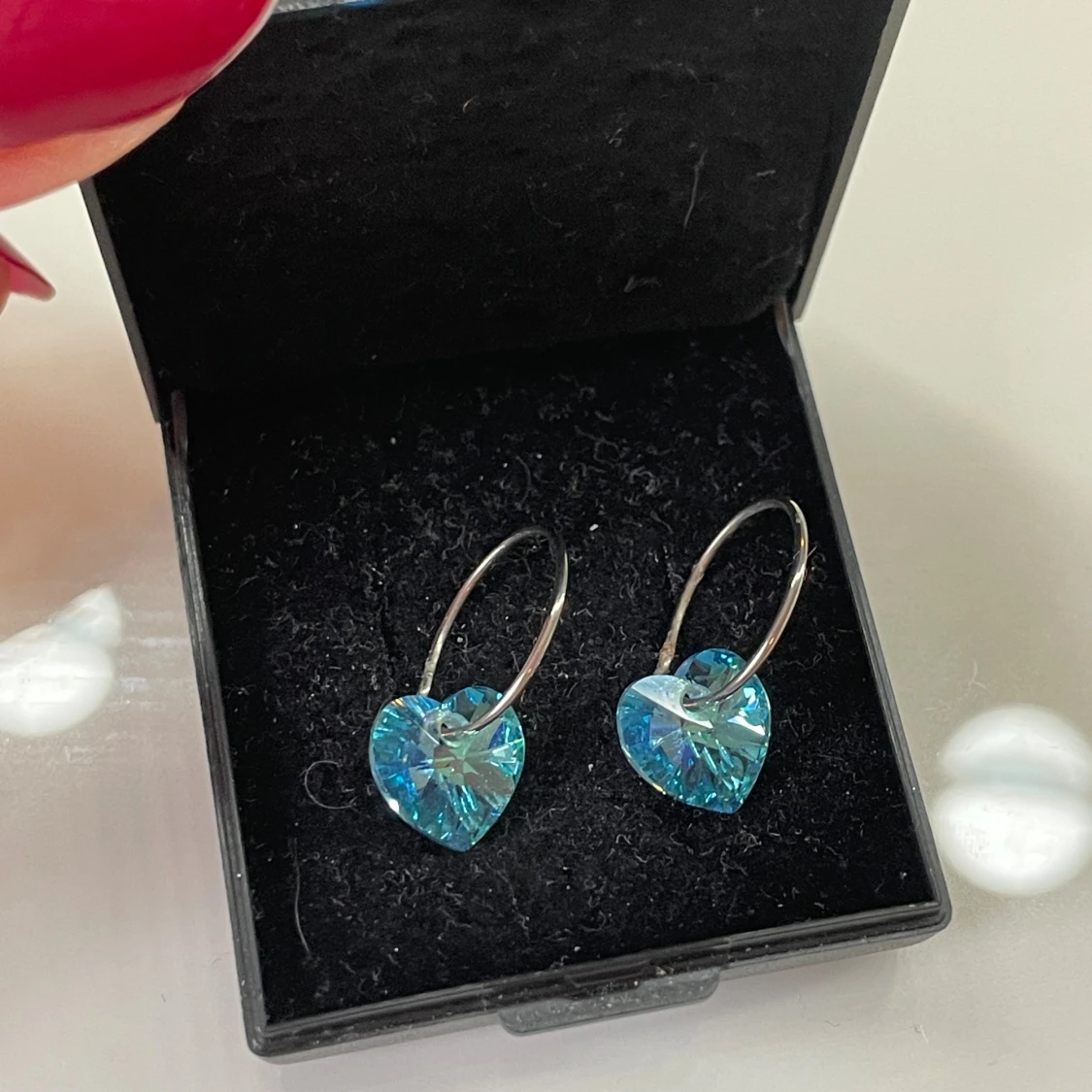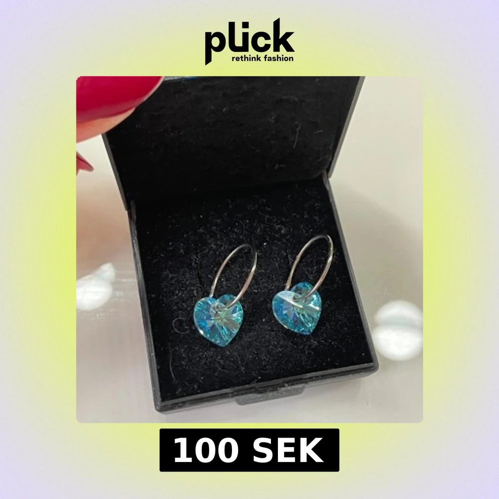 Supersöta örhängen med gnistrande blå hjärtan i kristall-look och tunna silverfärgade ringar. Perfekta för dig som vill ha något unikt och glittrigt som sticker ut. Hjärtformade hängen ger en romantisk vibe och passar till alla tillfällen.