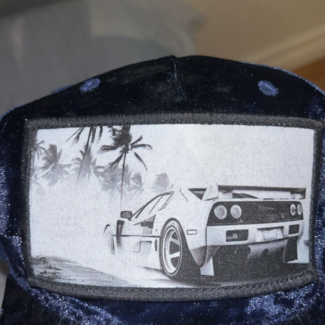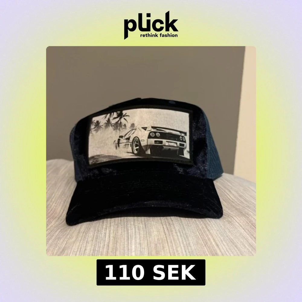 Snygg keps från Hatstore med mesh baktill. Framsidan har ett stort tygmärke med en svartvitt bild av en lamborghini och palmer som gör den väldigt snygg. Skärmen och fronten är i sammetsliknande material för extra stil. Passar bra till sommaren då man kan behöva en keps för skydd och varför inte ha en snygg keps isåfall. Svin bra skick.