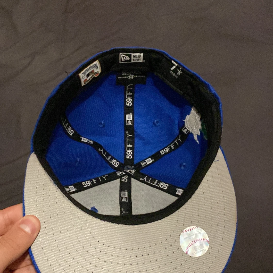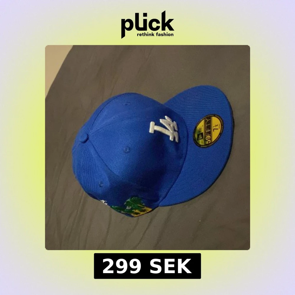 Säljer en blå New Era 59FIFTY keps med LA Dodgers logga i vitt framtill. Kepsen har en rak skärm i grått och broderade detaljer på sidan. Insidan har klassiska New Era och Cooperstown Collection etiketter. Perfekt för dig som gillar sportig streetstyle.