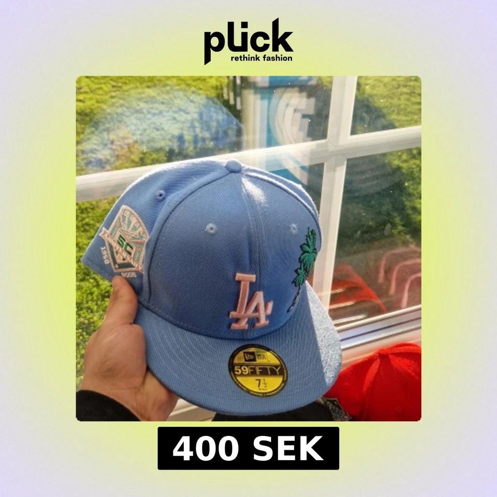 Snygg ljusblå 59FIFTY keps från New Era med LA-logga i rosa framtill och broderad palm på sidan. Kepsen har även en patch på sidan och klassisk flat skärm. Perfekt för dig som gillar streetwear och sportig stil.