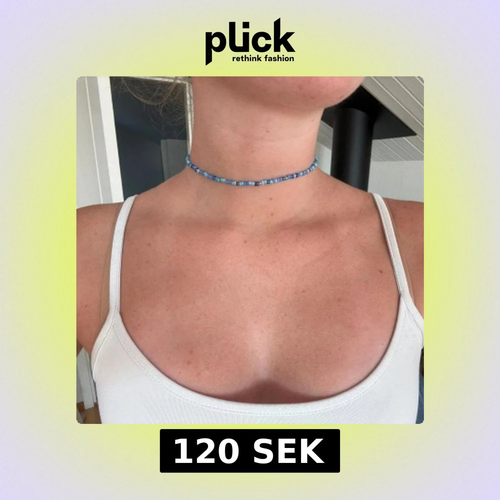 Superfin choker med små blå pärlor i olika nyanser och ett litet guldfärgat lås. Halsbandet sitter tajt runt halsen och ger en fräsch och somrig vibe. Perfekt för dig som gillar färg och vill ha något unikt och handgjort. kontakta mig med önskade färger och storlek! priset är förhandlingsbart ☺️