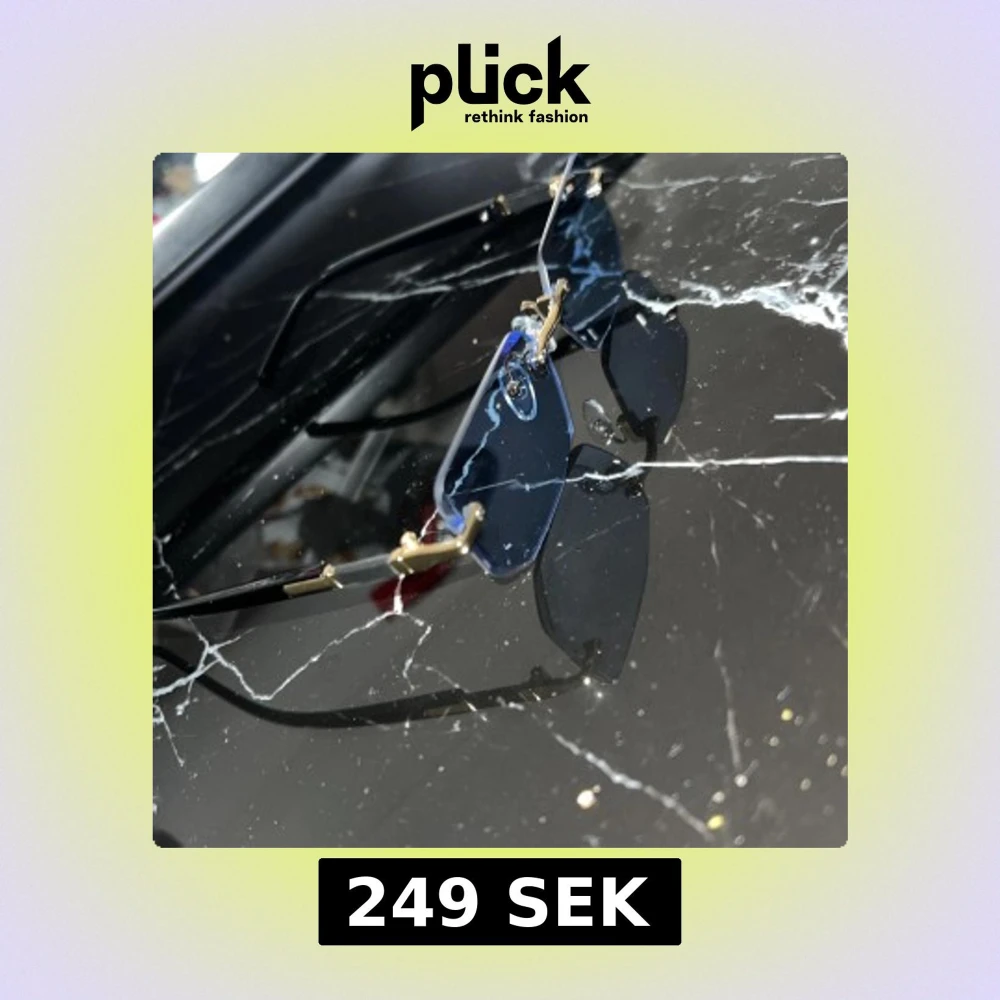 Snygga solglasögon med rektangulära blåtonade glas och tunna svarta skalmar. Glasögonen har guldfärgade detaljer vid bågarna och näsbryggan för en extra lyxig känsla. Perfekt accessoar för att lyfta din stil.