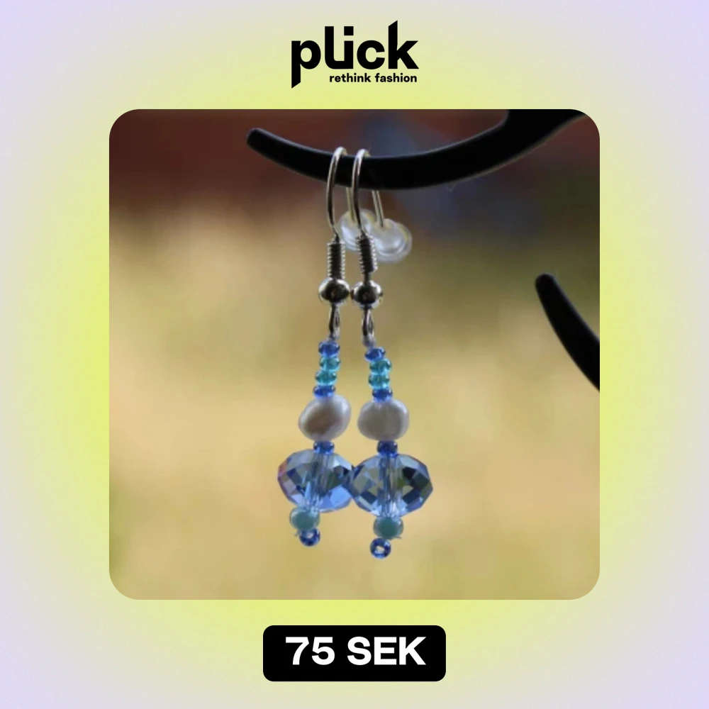 Säljer ett par superfina örhängen med blå och vita pärlor. De har en elegant design med små blå pärlor och större vita pärlor som ger en fin kontrast. Perfekta för både vardag och fest! 💙✨