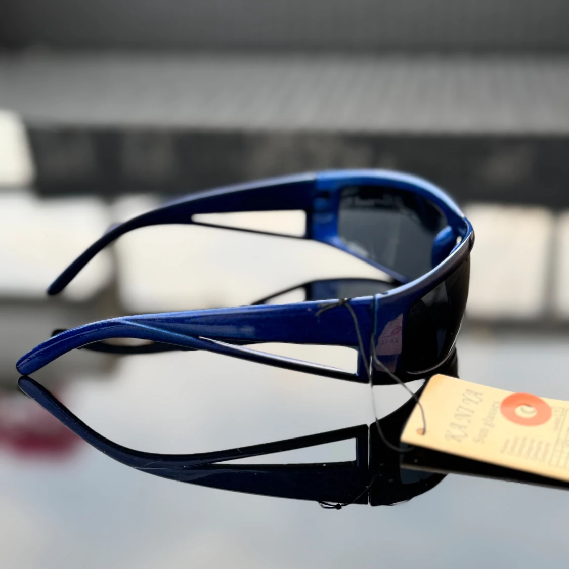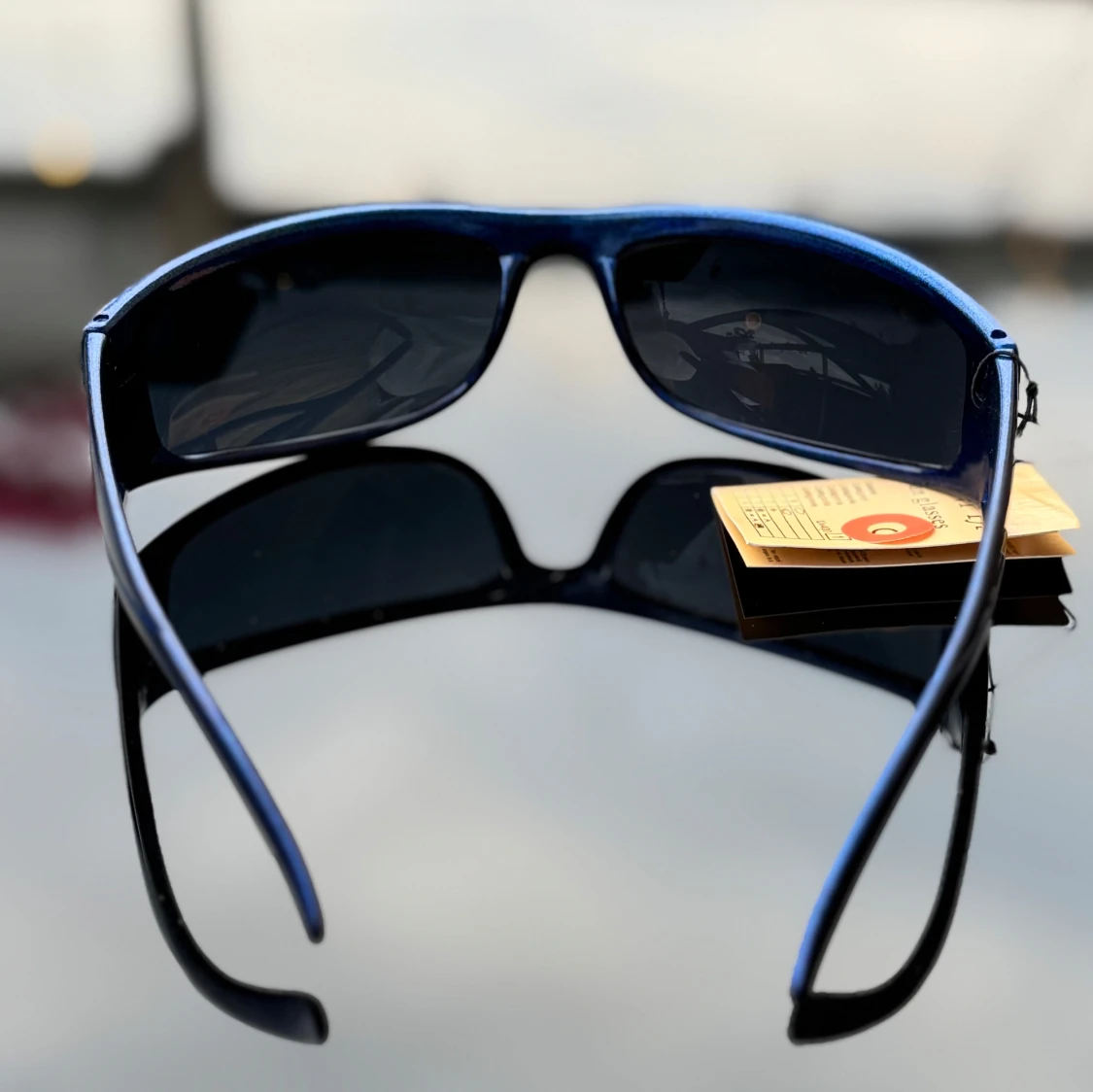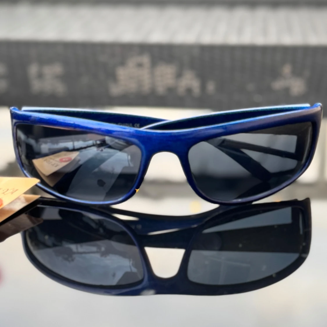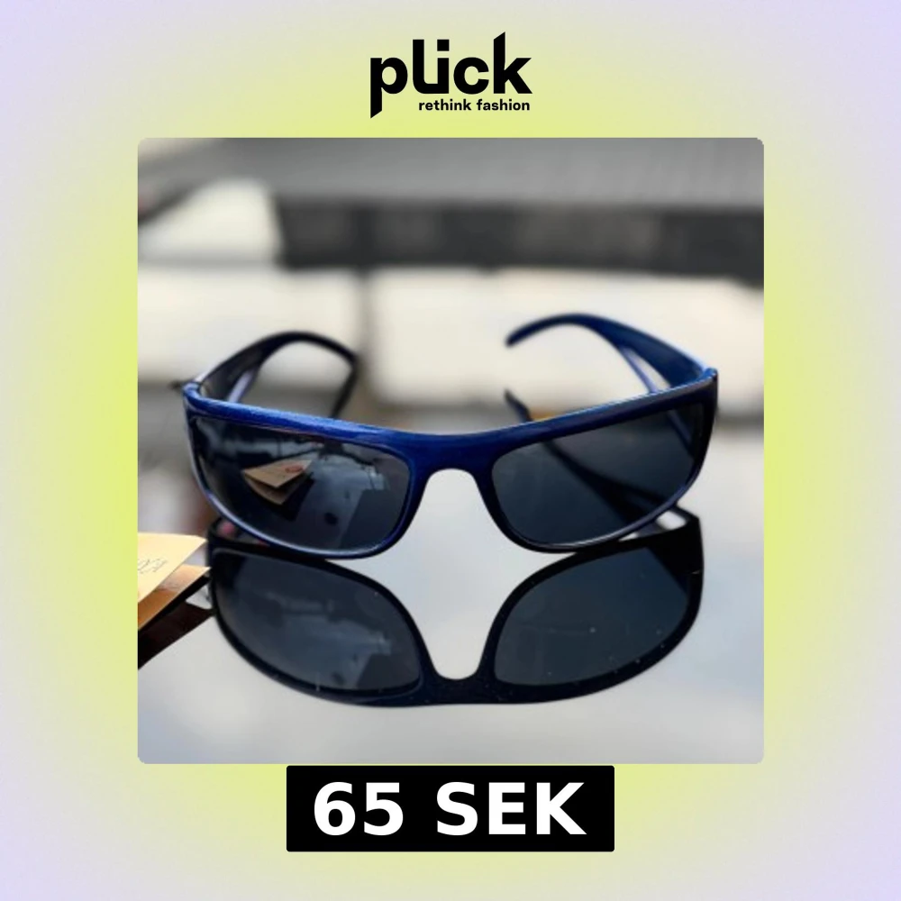 NYA Snygga solglasögon med sportig vibe i metallicblå plast. UV400-skydd. Hämtas gärna i Hägersten.