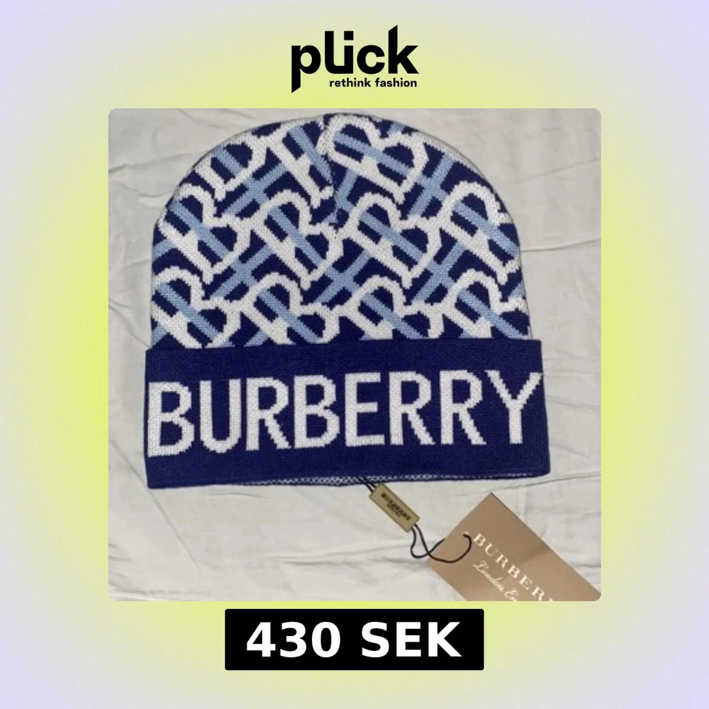 Snygg mössa från Burberry i blått och vitt med ikoniskt monogrammönster och stor logga framtill. Mössan är stickad och har en bred uppvikt kant. Perfekt accessoar för att lyfta din vinterstil.