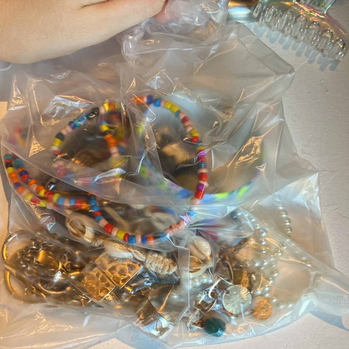 Massa olika smycken! Inget är trasigt eller missfärgat, men det har legat i mitt gamla smyckesskrin som jag inte längre använder. Halsband, ringar, armband, örhängen och nyckelringar - både silver- och guldfärgade. Säljer hela påsen för 99kr 💕🌟