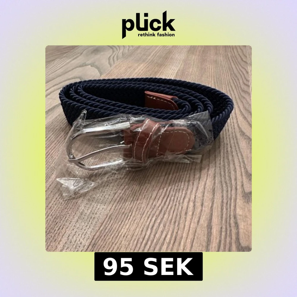 Snyggt blått flätat bälte med detaljer i brunt läder och ett silverfärgat spänne. Perfekt för att ge en stilren touch till din outfit. Passar både till jeans och chinos.