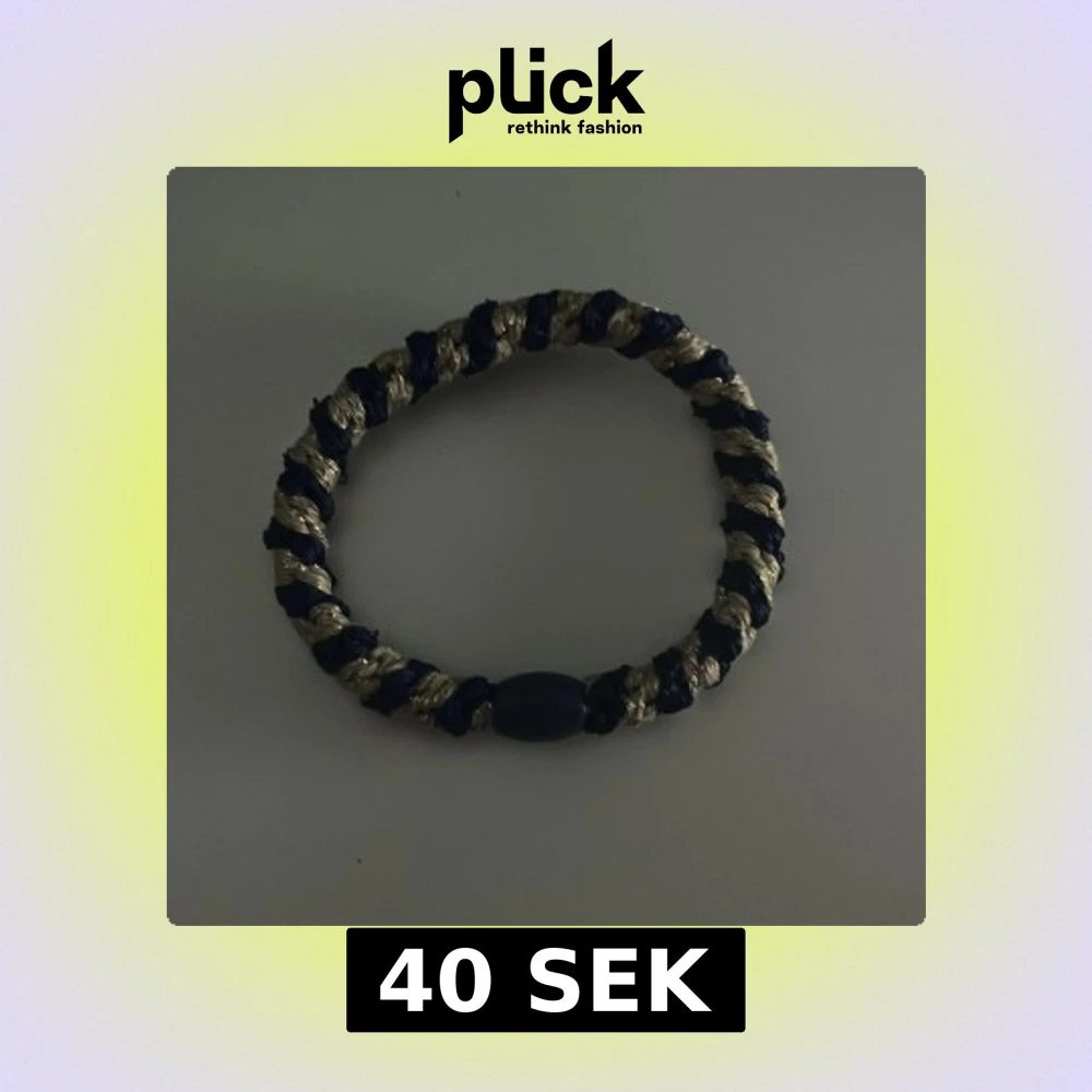 Snyggt flätat armband i mörkblått och guld med en oval pärldetalj. Armbandet har en grov, tvinnad design som ger en cool och unik look. Perfekt för dig som gillar att sticka ut med accessoarer.