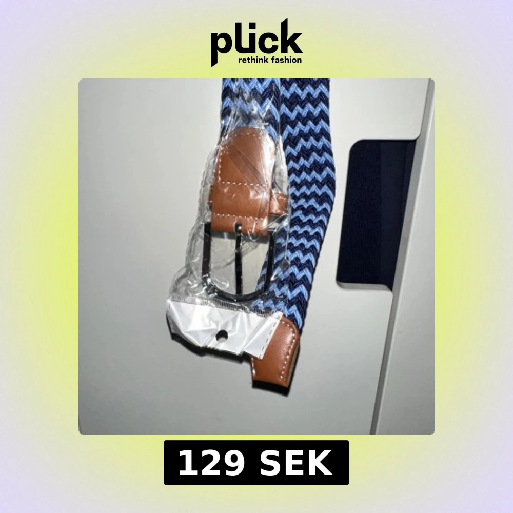 Säljer ett snyggt bälte med blått och svart zigzag-mönster. Spännet är i metall och ändarna är förstärkta med brunt skinn. Perfekt för att ge outfiten lite extra edge och färg. Bältet är flexibelt och passar till jeans eller chinos.