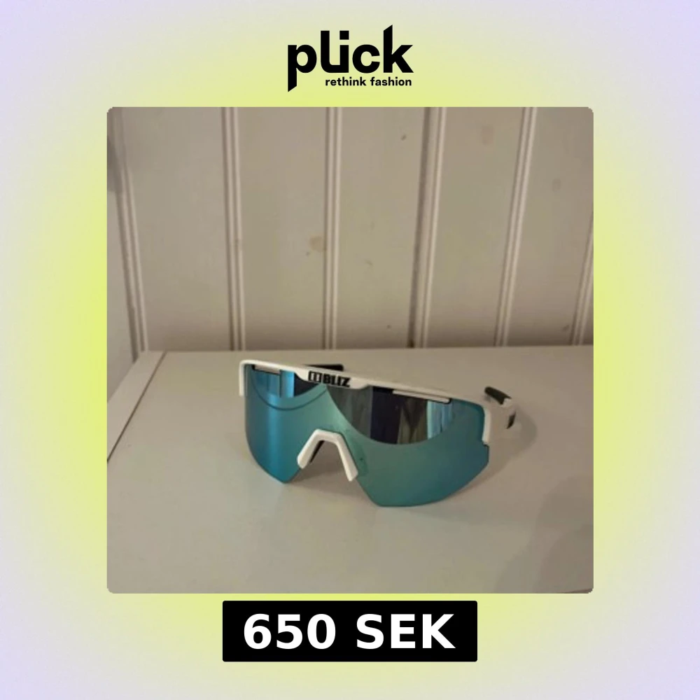 Snygga sportglasögon från Bliz med vit båge och spegelblått, stort linsformat glas. Perfekta för dig som gillar att sticka ut med en futuristisk vibe. Lätta och bekväma med svart detalj på skalmarna. Riktigt clean look för träning eller cykel.