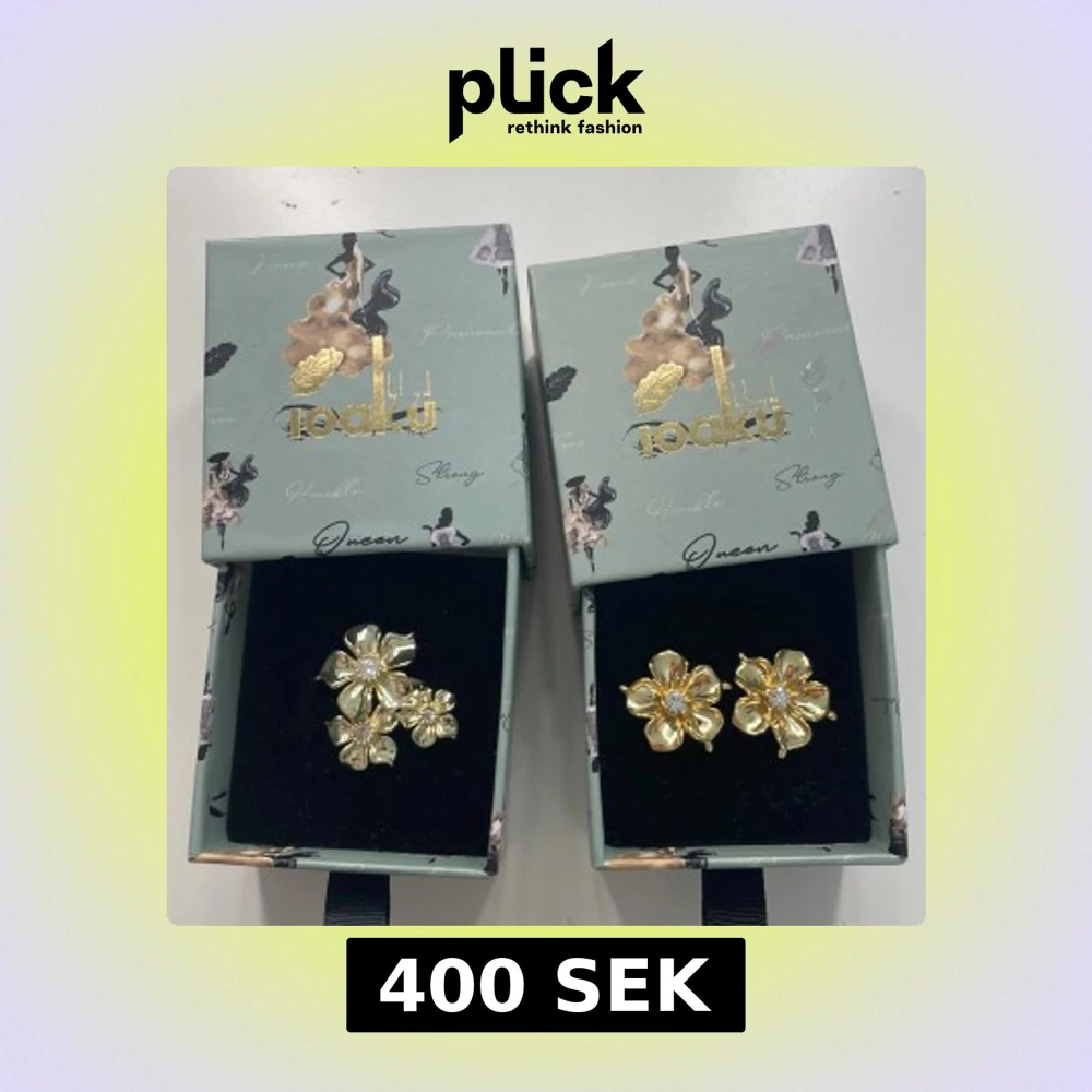 Säljer en blom ring och örhängen från IOAKU, kan säljas som ett set för 700kr eller ringen för 450kr eller örhängena för 350kr. Köpte både ringen och örhängena för 1050kr från deras hemsida. Jättefint skick bara använt några antal gånger. Säljer pga att det kommer aldrig till användning. Köparen får betala för frakten