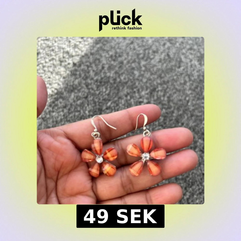 Charmiga örhängen i form av blommor med orange kronblad och en glittrande sten i mitten. De har en silverfärgad baksida och hängande krokfäste. Perfekta för att lägga till en färgglad touch till din outfit.