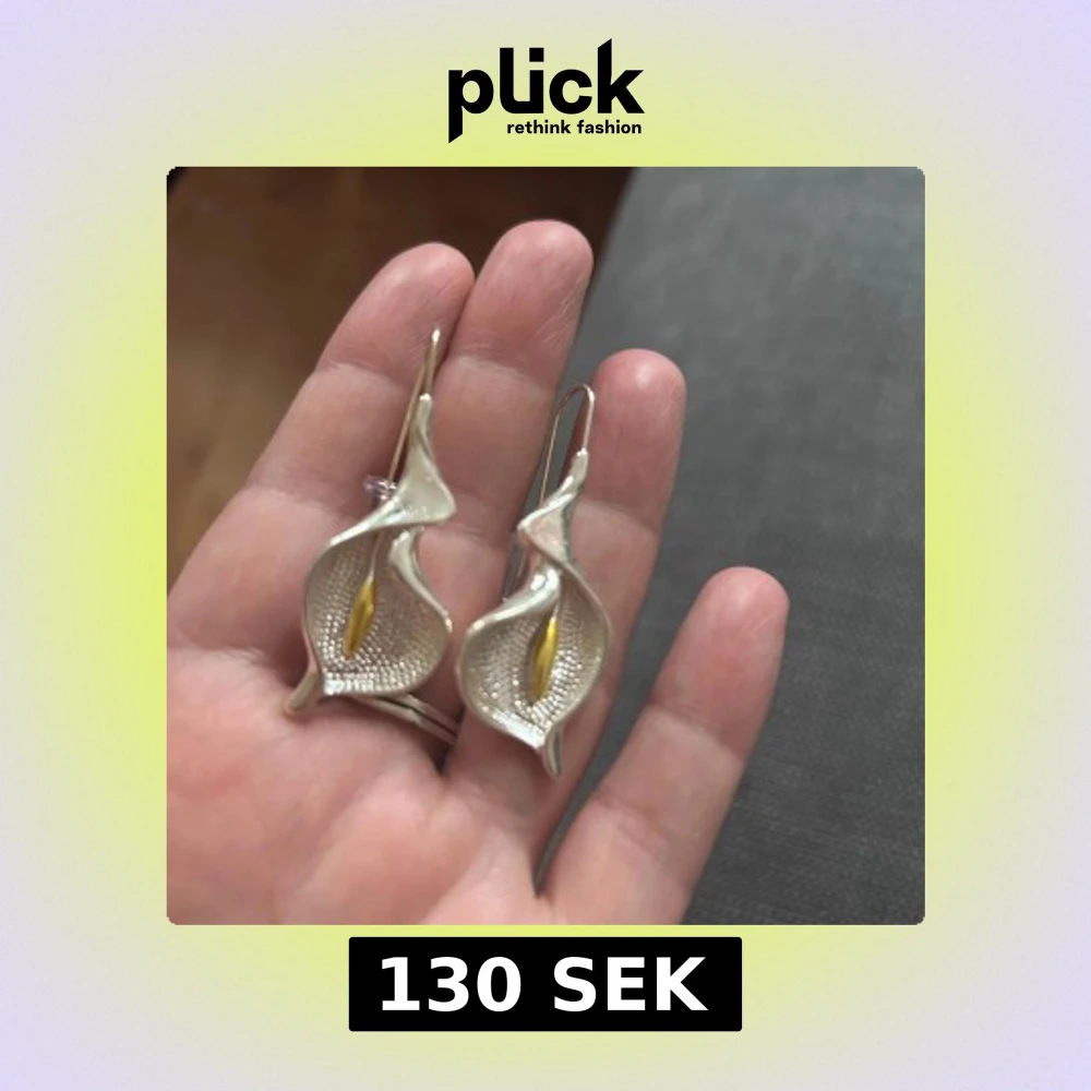 Unika örhängen i form av blommor med en elegant, böljande design. Tillverkade i silverfärgat material med en gulddetalj i mitten som ger extra lyxig känsla. Perfekta för dig som vill sticka ut med ett konstnärligt smycke.