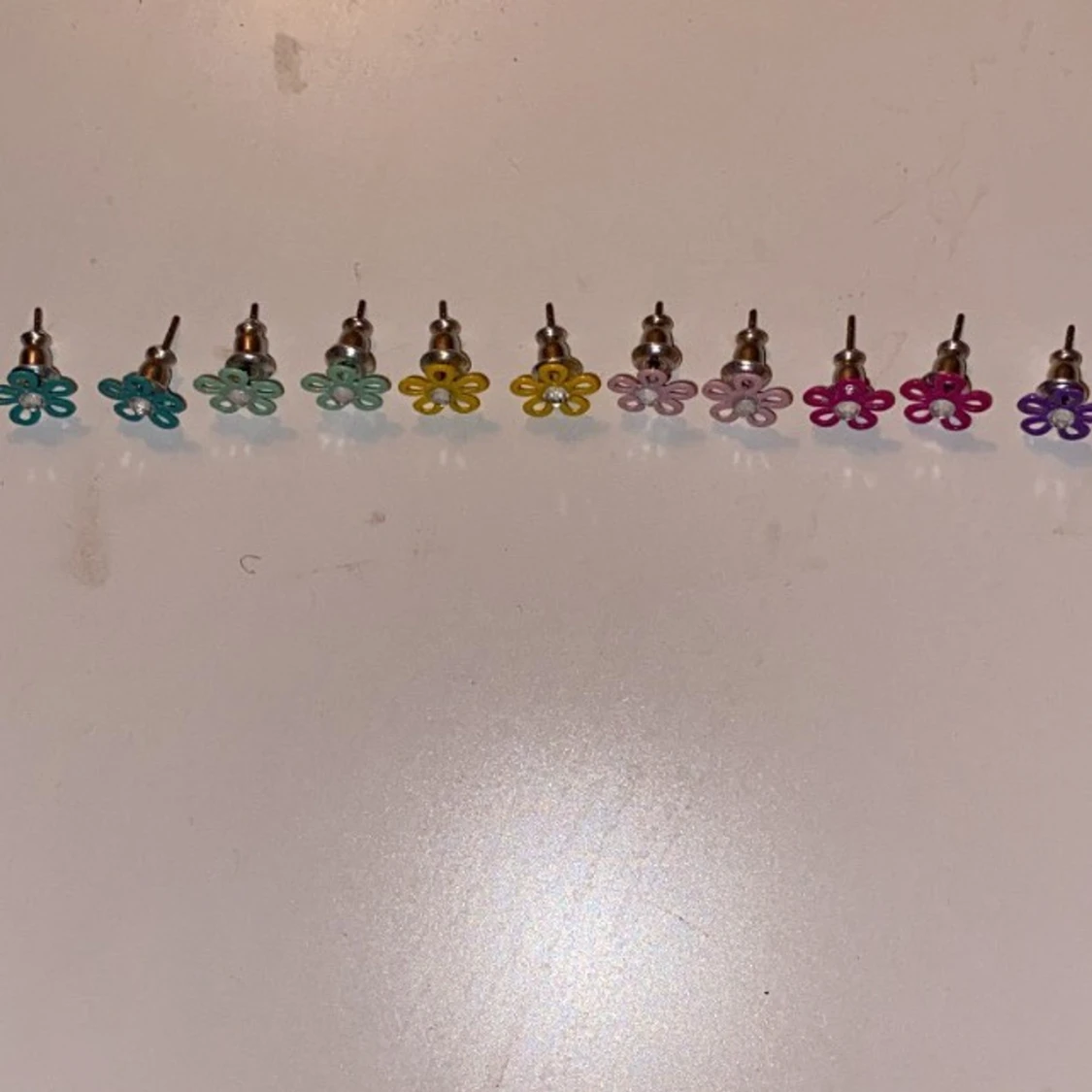 Jättesöta blomörhängen i ett flertal färger. Alla är i bra skick! Tyvärr har jag tappat det ena lila. De passar jättebra om man till exempel har flera hål att få sätta i de övre. Tar 20kr för de som är i par och 10kr för ett.
